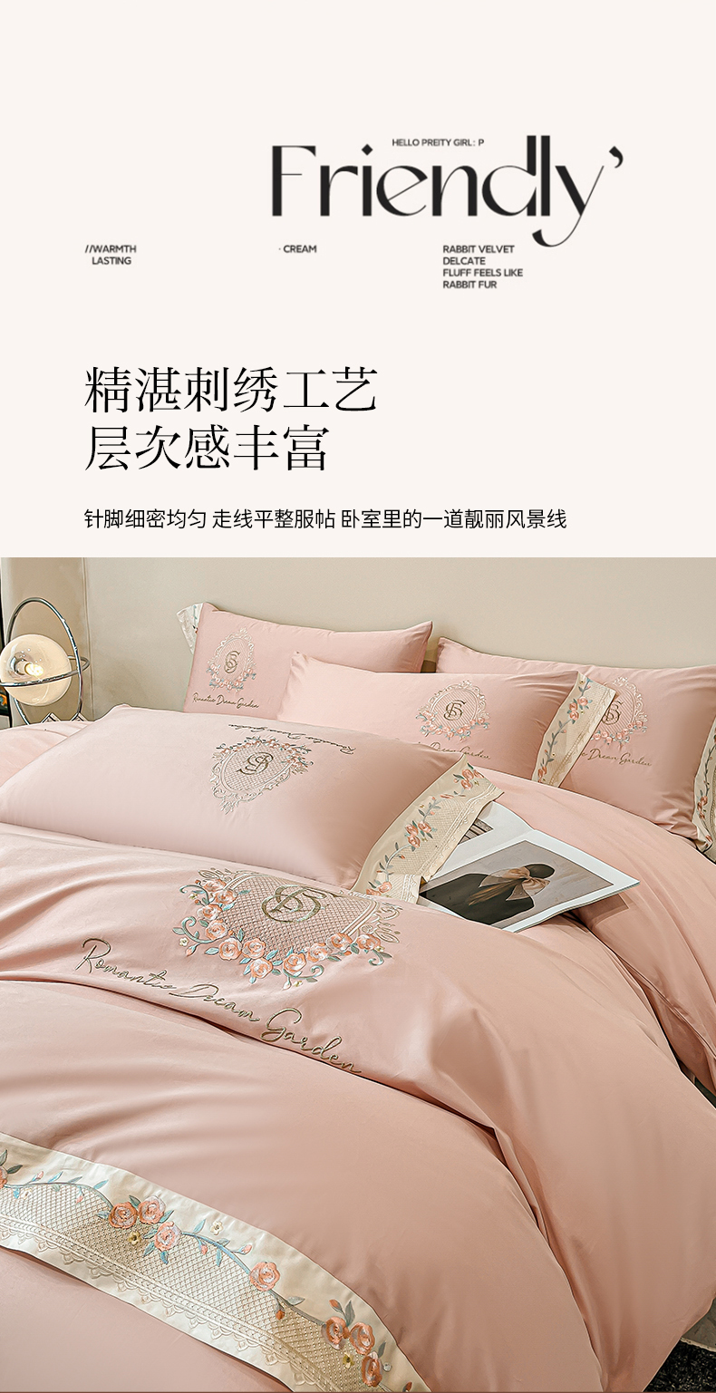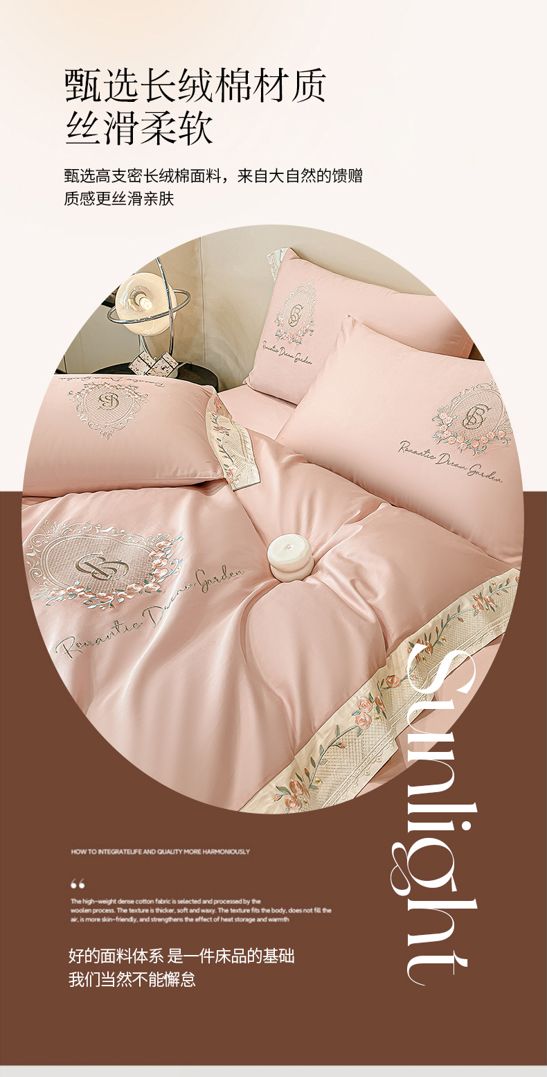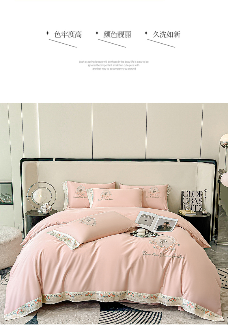 当前位置: 91家纺网 > 商品网购 > 床品套件 > 四件套 > 长绒棉四件套 > 桃园 2025新款纯棉全棉长绒棉刺绣绣花四件套(高端礼盒)-叶语 叶语-轻奢粉