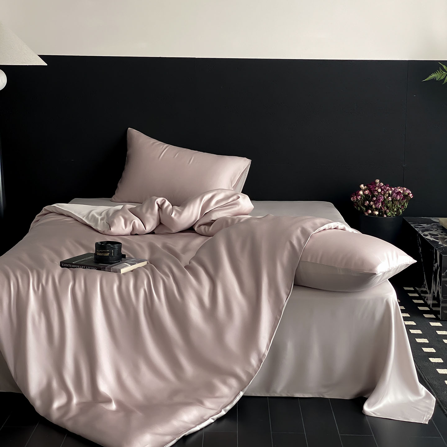 群鹿蚕丝羽绒馆 2025新款60支兰精天丝纯色双拼四件套 月光色-岩石灰