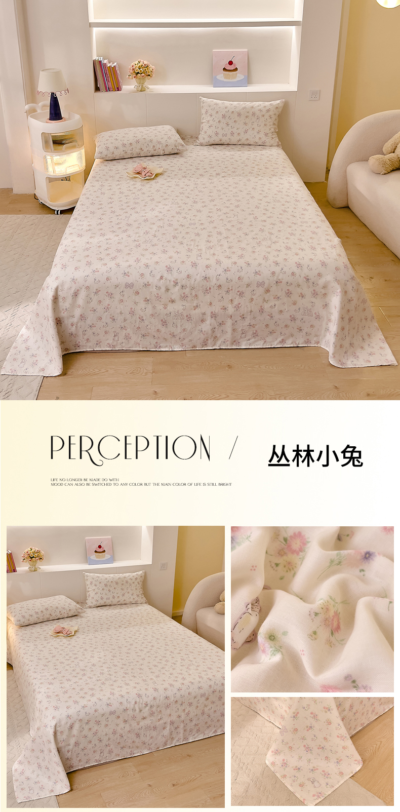 • 91家纺网 家纺一手货源 找家纺 DoDo 兜兜 2025新款全棉纯棉小温暖双层纱系列单床单【可定做尺寸】 丛林小兔