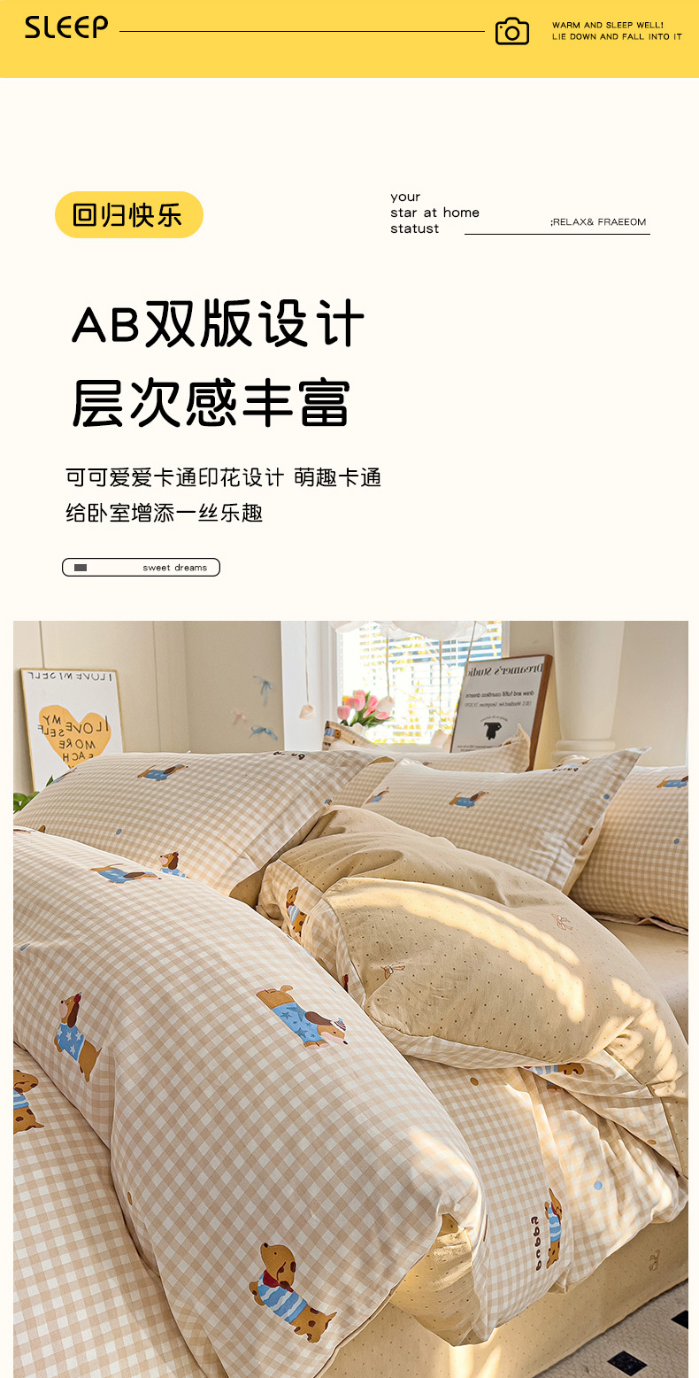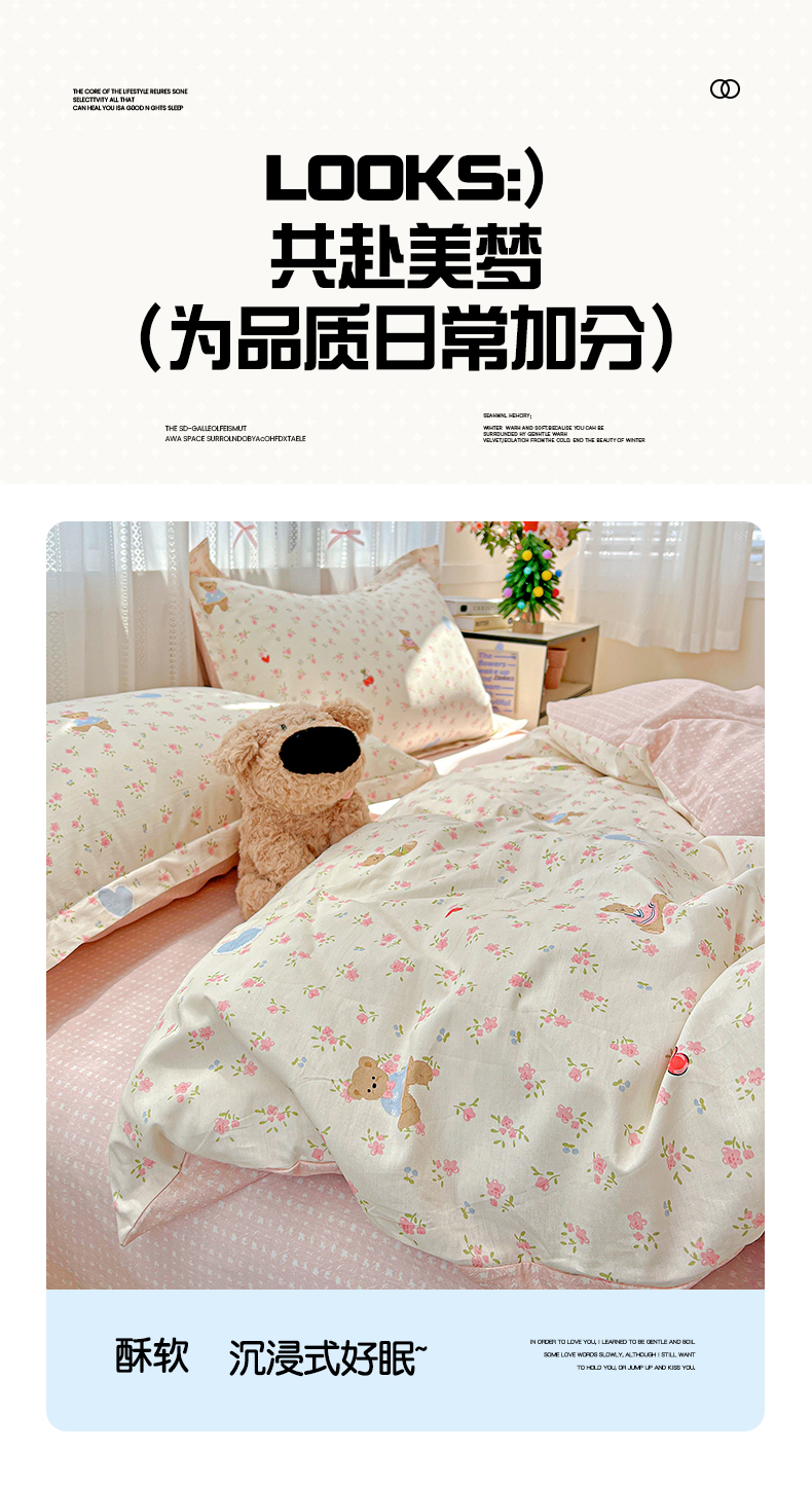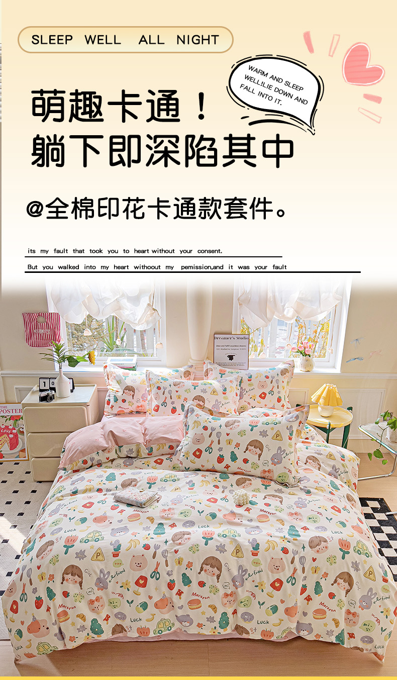 (总)依庭 2025新款高克重全棉纯棉磨毛印花四件套,乐享,奥维斯,贝丽丝,彼得兔,草莓奶昔,茶言妙语,初漫,蝶恋花,朵唯,朵韵,芳盈,飞花令,哈基米,好伙伴,好运熊-咖,好运熊-蓝,红冠象,花色伊人,吉唛,悸动,惊鸿-粉,惊鸿-桔,可爱兔,恐龙告白,酷小狗,快乐星球,蓝色恋人,绿萝,玛雅,曼迪,玫瑰花语,萌车派对,萌宠,莫利格,奶油小狗,南瓜熊,尼彩,帕比,皮皮狗,清新花园,山樱,笙白-桔,甜梦茶语,甜心花语,仙女星辰,小欢喜,星梦乐园,星晚-粉,幸福小熊,幸运熊,寻悦-桔,叶叶情深,叶之恋,叶芝,樱贝,樱絮仙踪,优漫,悠悠仙草,柚见,灼华