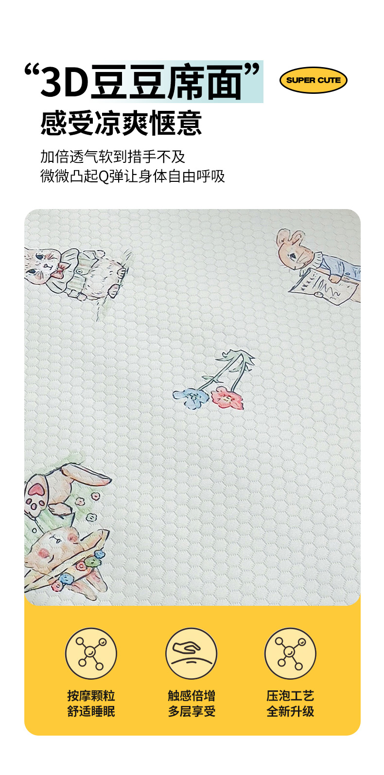 商品名称:(总)小叮当家纺仓储工厂店 (提供买家秀 爆款花型 不断货)2025新款冰豆豆儿童卡通凉席床笠