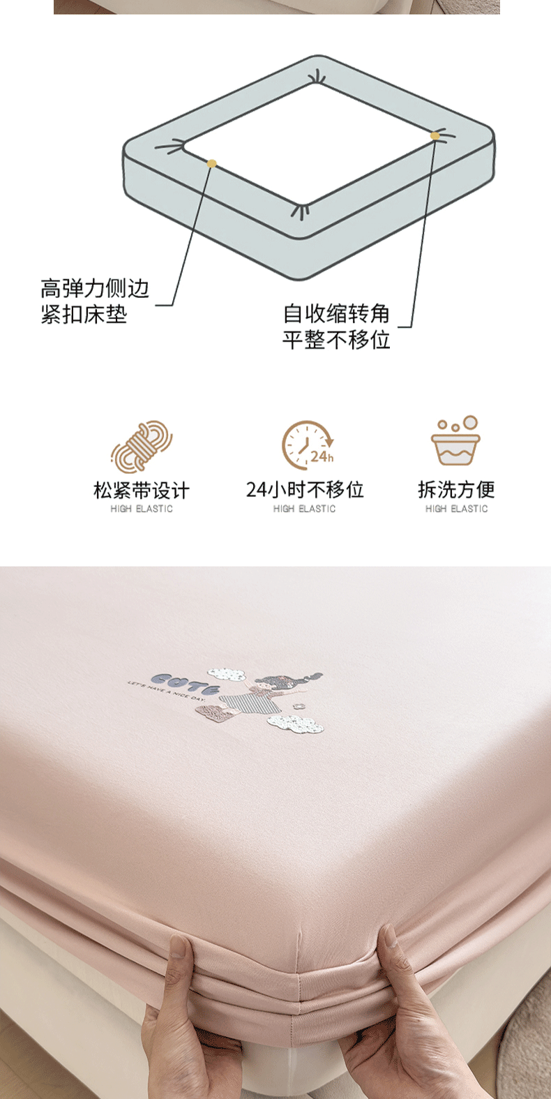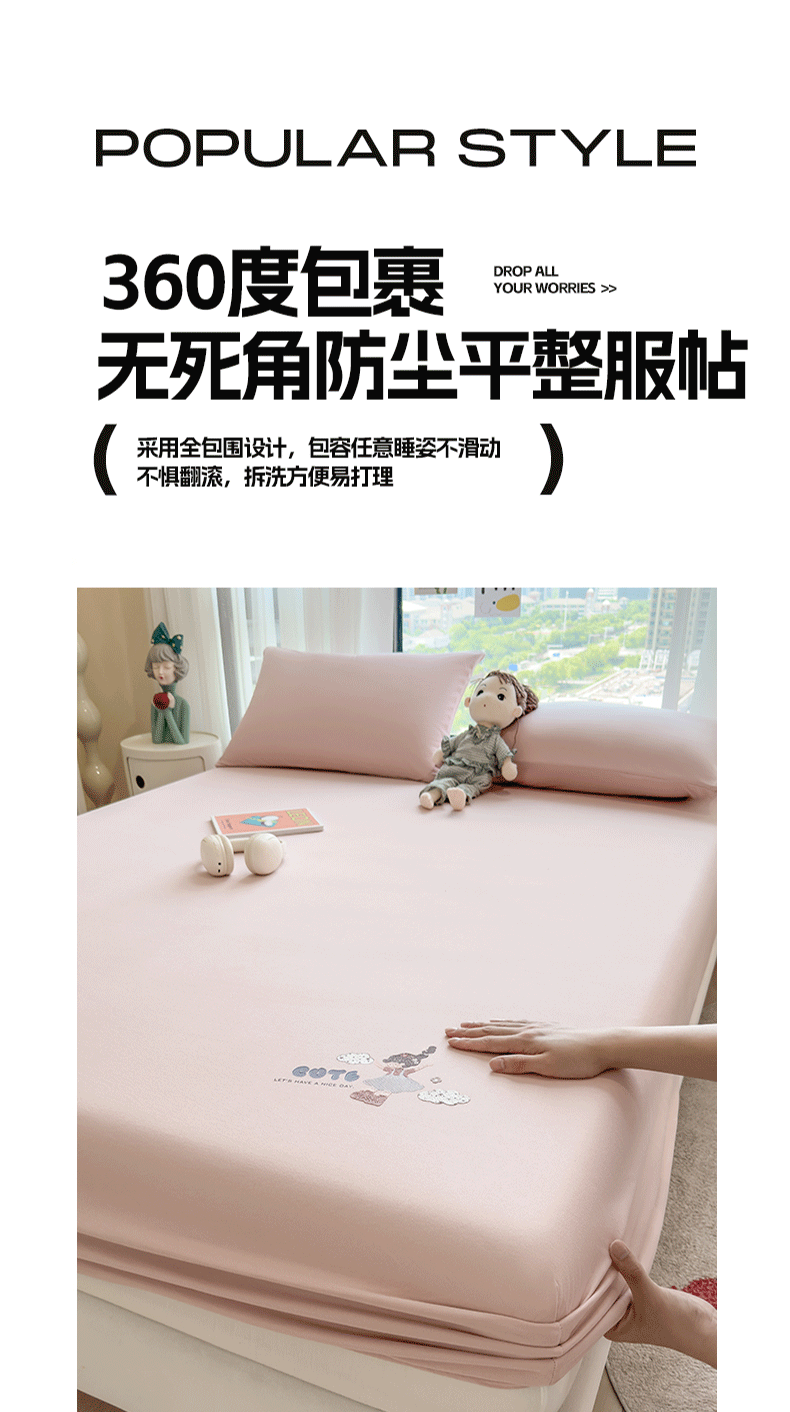 • 91家纺网 家纺一手货源 找家纺 米菲 2025新款高密针织棉印花床笠-梦幻 梦幻--少女粉