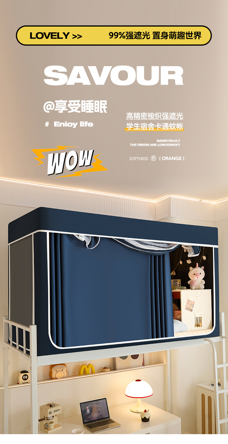 当前位置: 91家纺网 > 商品网购 > 床上用品 > 蚊帐 > 学生蚊帐 > 世婕 2025新款高精密梭织强遮光学生宿舍卡通蚊帐 梭织-藏青