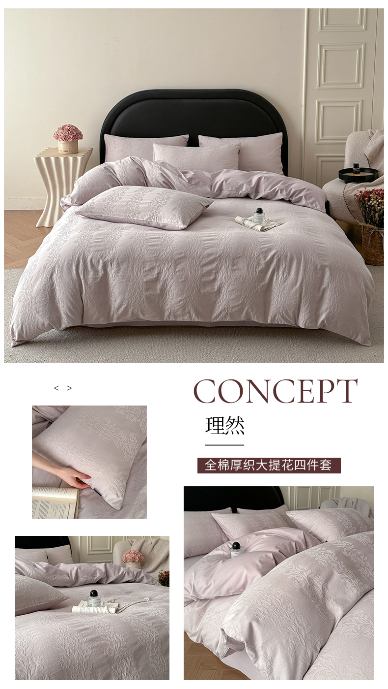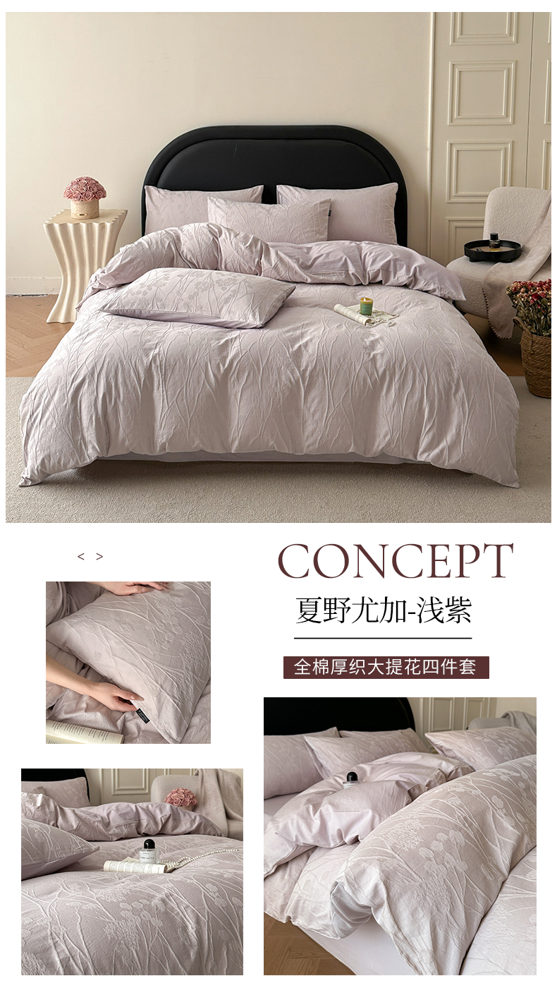 (总)宜代光年 2026新款全棉厚织大提花系列四件套,白棠-浅紫,理然,漫莎,翩然-奶白,翩然-浅粉,夏野尤加-奶白,夏野尤加-浅紫,云织-浅粉
