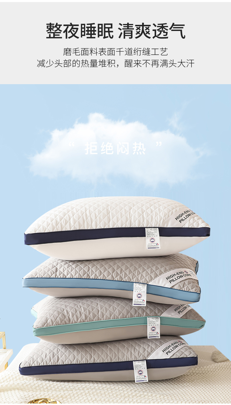 (总)圣之寐 2025新款三线格磨毛羽丝绒枕枕头枕芯 ,灰色低枕,灰色中枕,灰色高枕,白色低枕,白色中枕,白色高枕,蓝色低枕,蓝色中枕,蓝色高枕