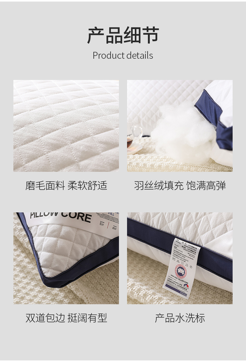 商品名称:(总)圣之寐 2025新款新品 格纹冷灰单边双边羽丝绒舒适枕头枕芯