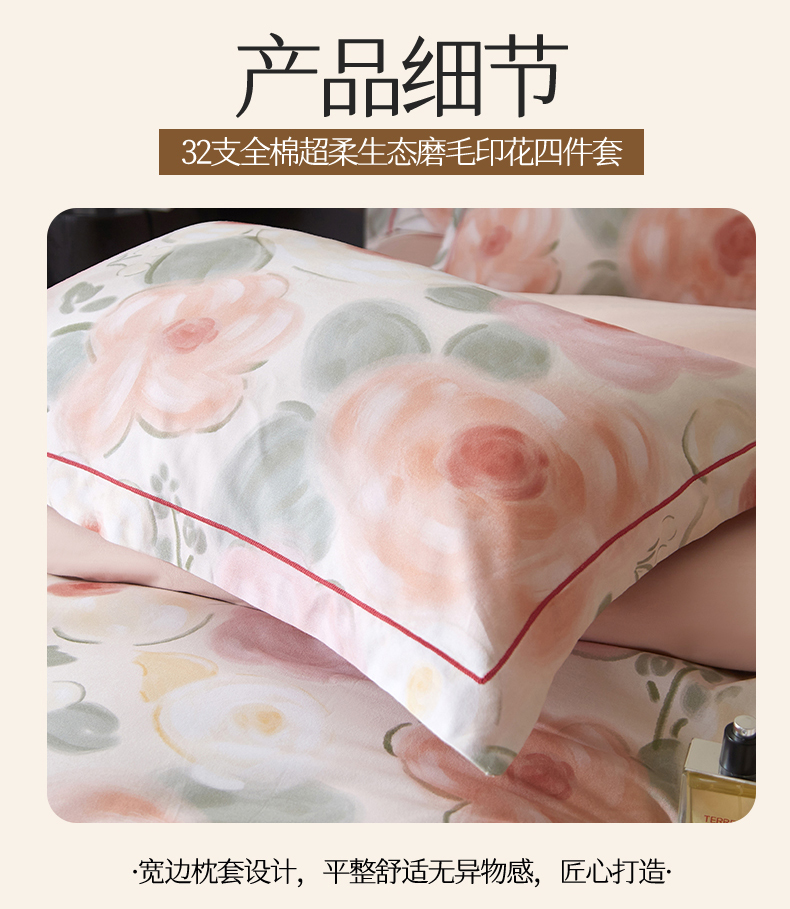 商品名称:曼秀琳 2025秋冬新款32支超柔生态磨毛四件套 桃汐-桔