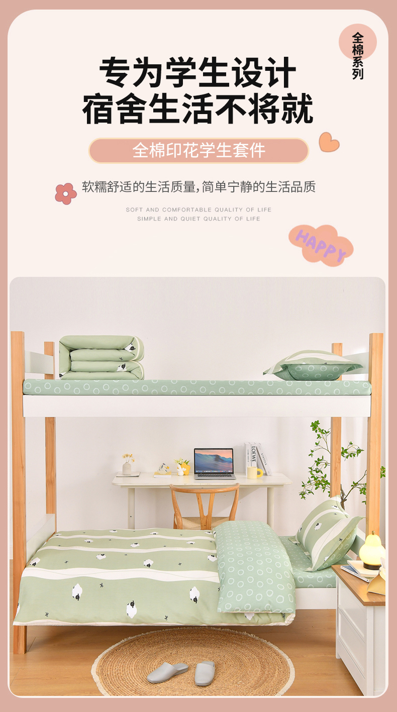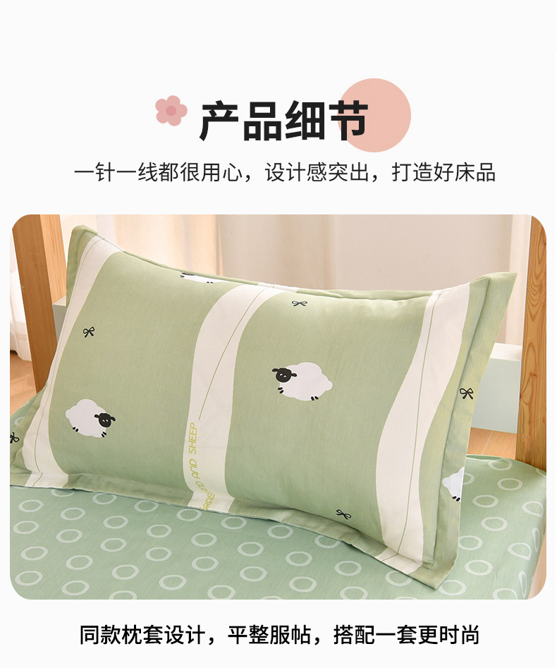 当前位置: 91家纺网 > 商品网购 > 床品套件 > 四件套 > 全棉普通四件套 > 乐旗家纺 2025新款全棉13372印花学生上下铺套件宿舍三件套 羊羊羊-绿