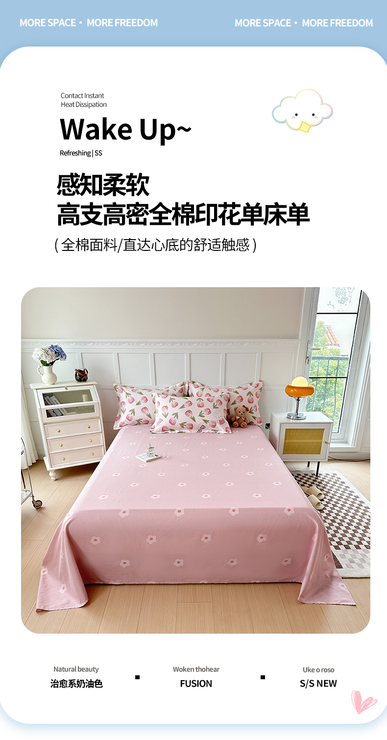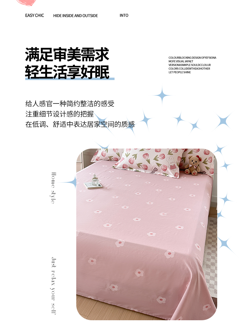 小叮当家纺仓储工厂店 (爆款花型 长期款 不断货)2025新款小清新印花条纹卡通花卉纯棉全棉单品系列--单床单 花仙兔B版