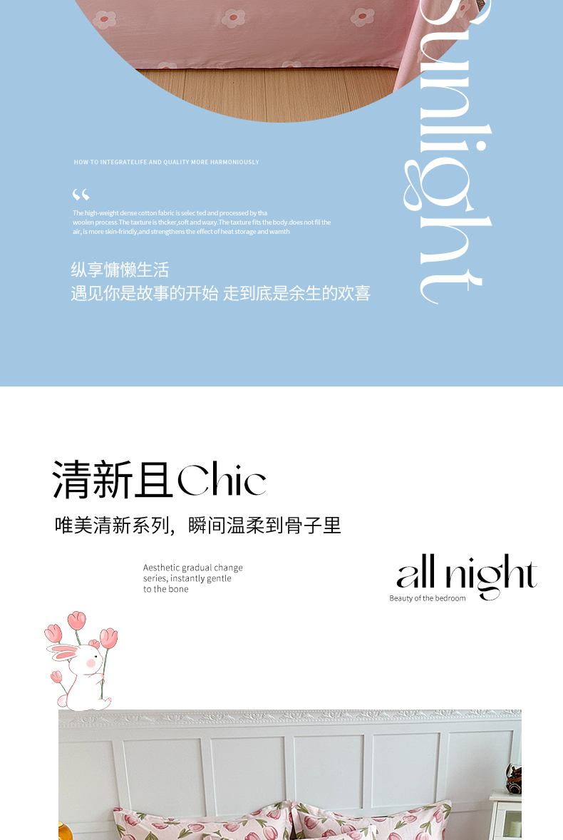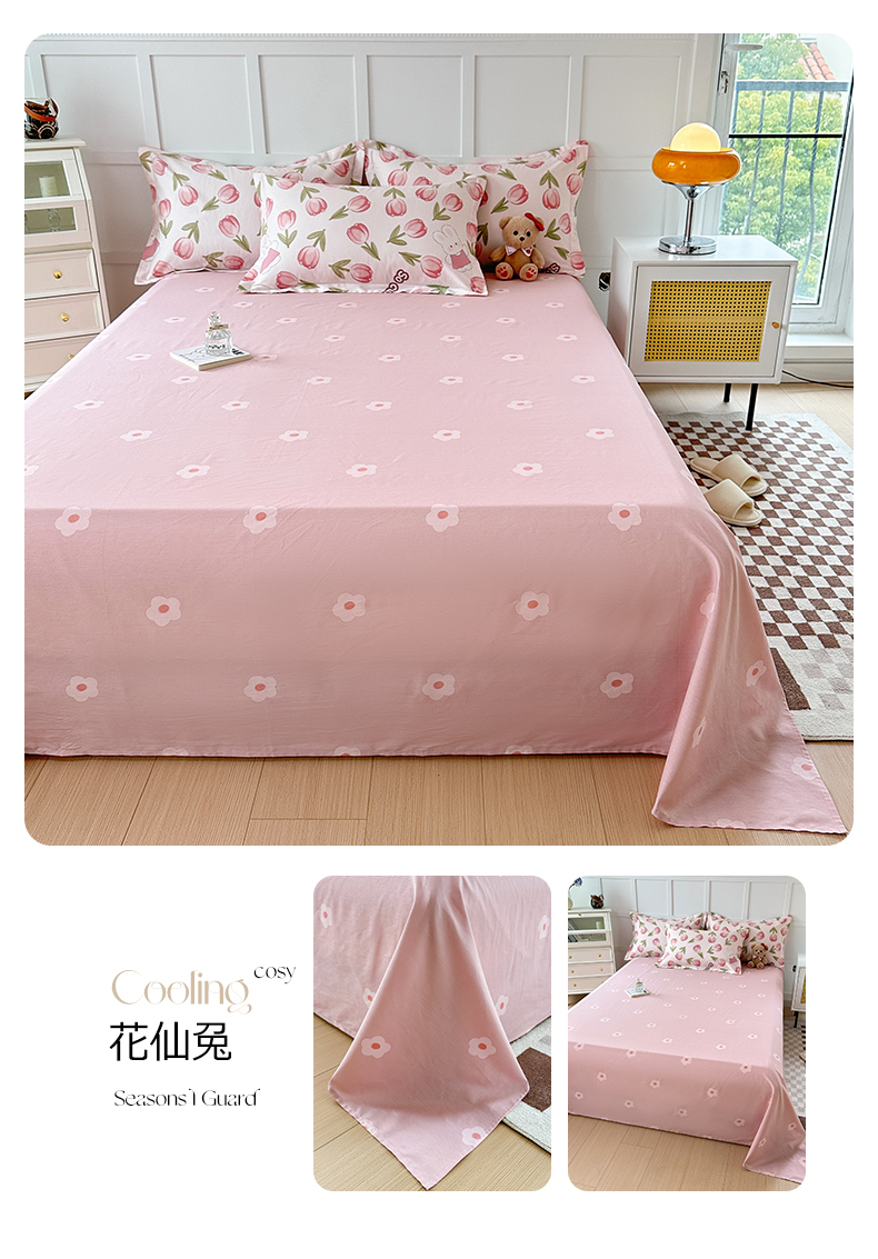 • 91家纺网 家纺一手货源 找家纺 小叮当家纺仓储工厂店 (爆款花型 长期款 不断货)2025新款小清新印花条纹卡通花卉纯棉全棉单品系列--单床单 花仙兔B版