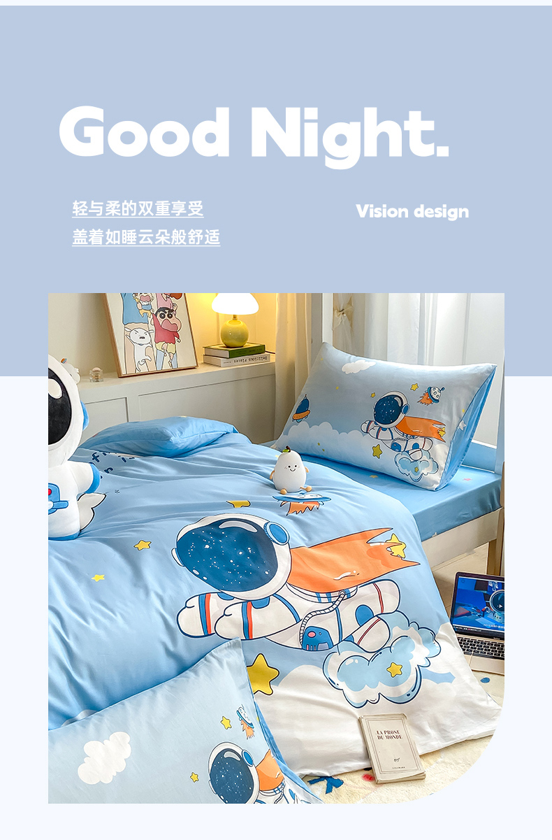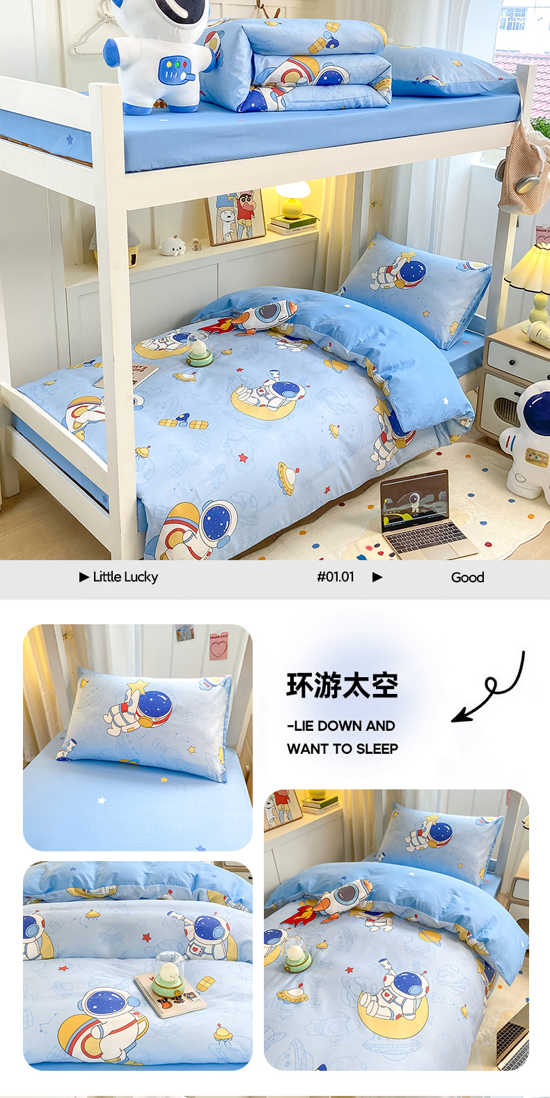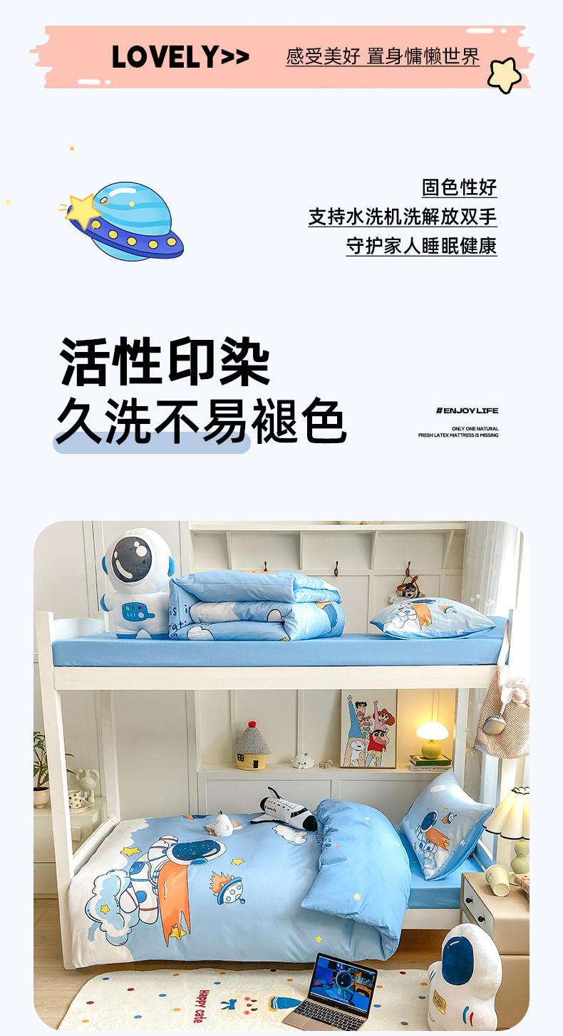 当前位置: 91家纺网 > 商品网购 > 床品套件 > 四件套 > 全棉普通四件套 > 博雅 2025新款全棉纯棉学生宿舍上下铺六件套-宇航员系列 六件套包装
