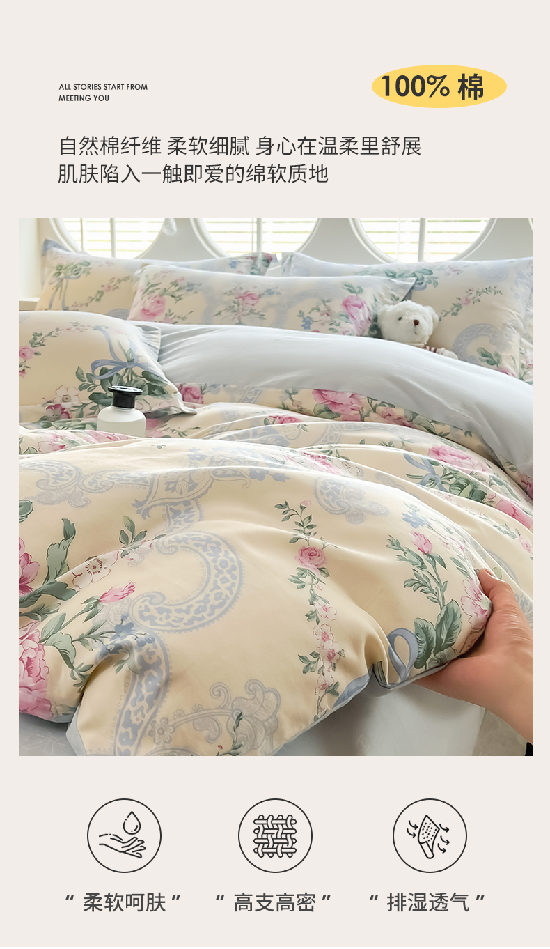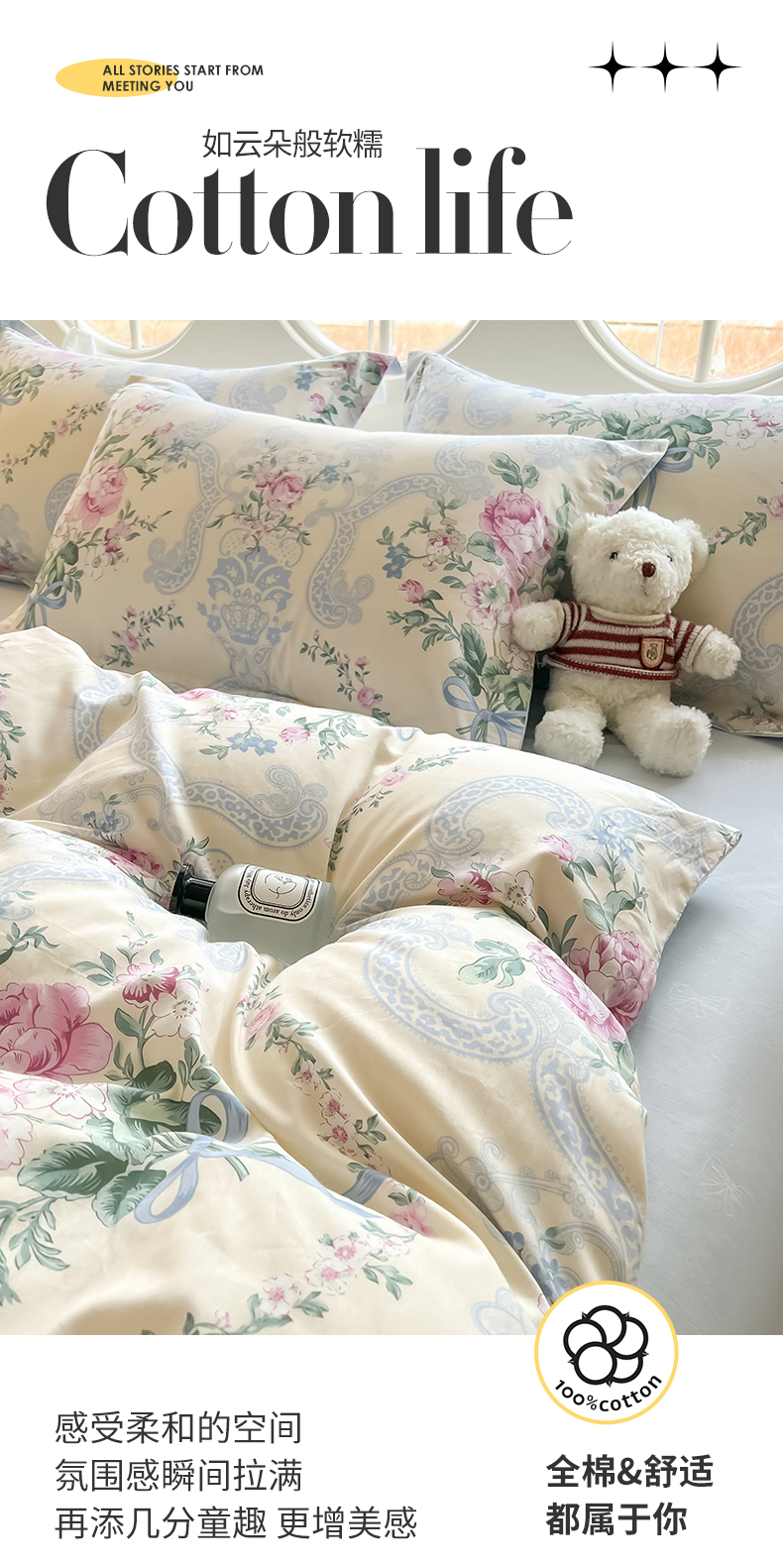 西域种棉人·千百笠 2025新款全棉纯棉大学生宿舍100%新疆棉花被子被褥一整套枕头床垫三件套六件套 古典花束