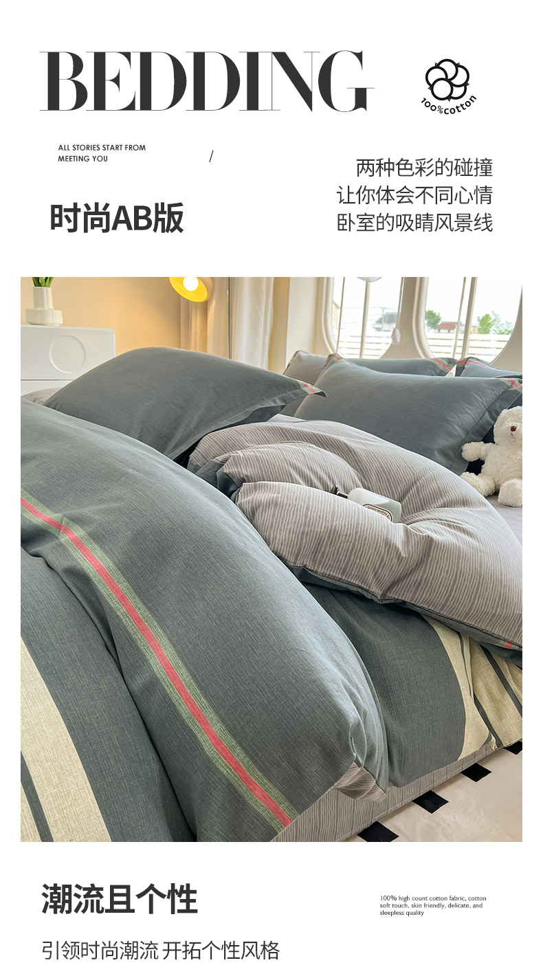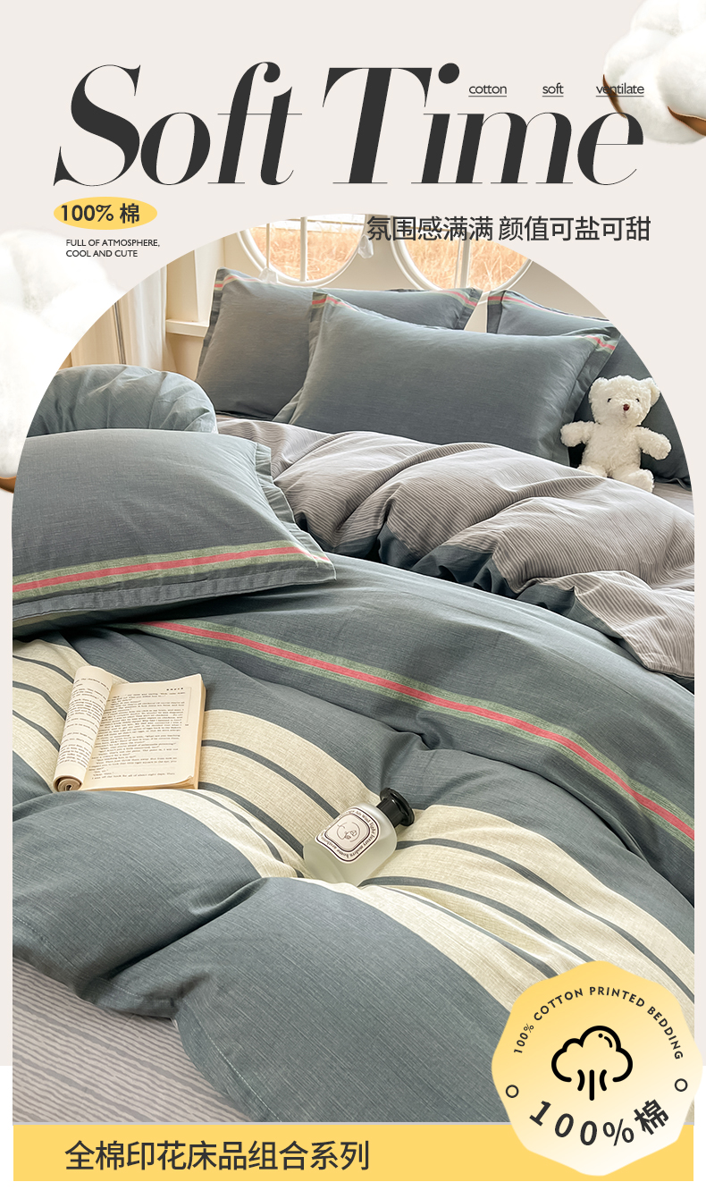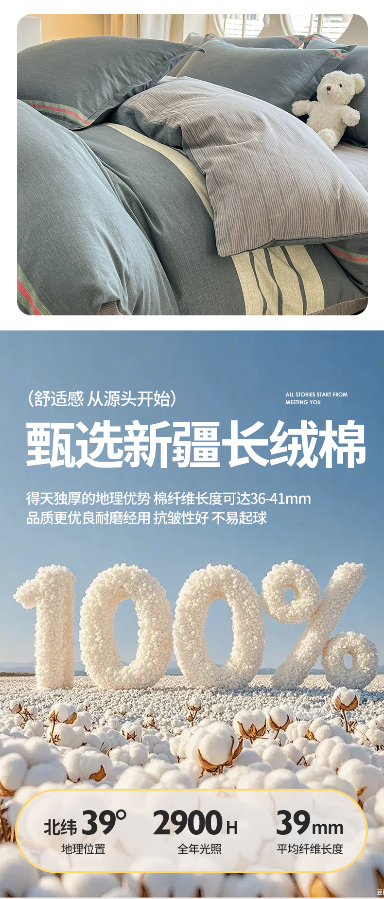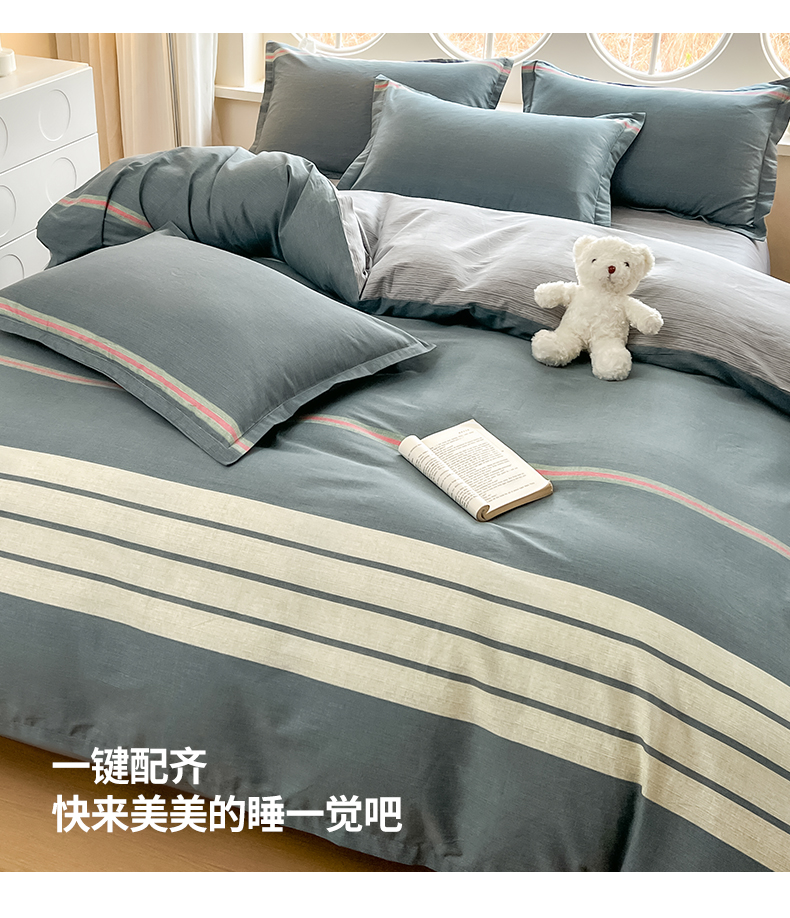 商品名称:西域种棉人·千百笠 2025新款全棉纯棉大学生宿舍100%新疆棉花被子被褥一整套枕头床垫三件套六件套 时尚条纹