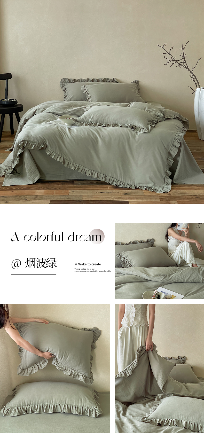三味舒屋2025新款花边美学-全棉双层纱四件套 烟波绿