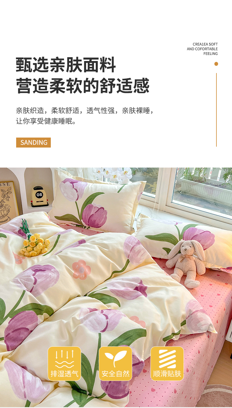 当前位置: 91家纺网 > 商品网购 > 床品套件 > 四件套 > 文黛家居 2025新款植物羊绒小版花四件套 郁金香-紫