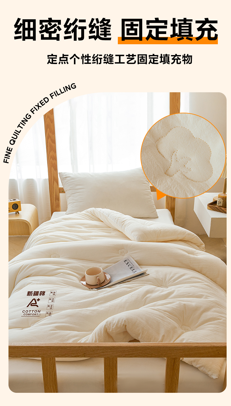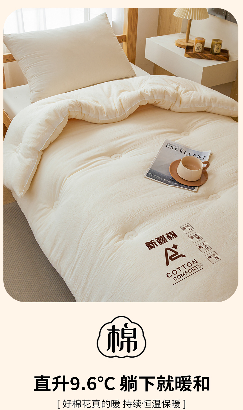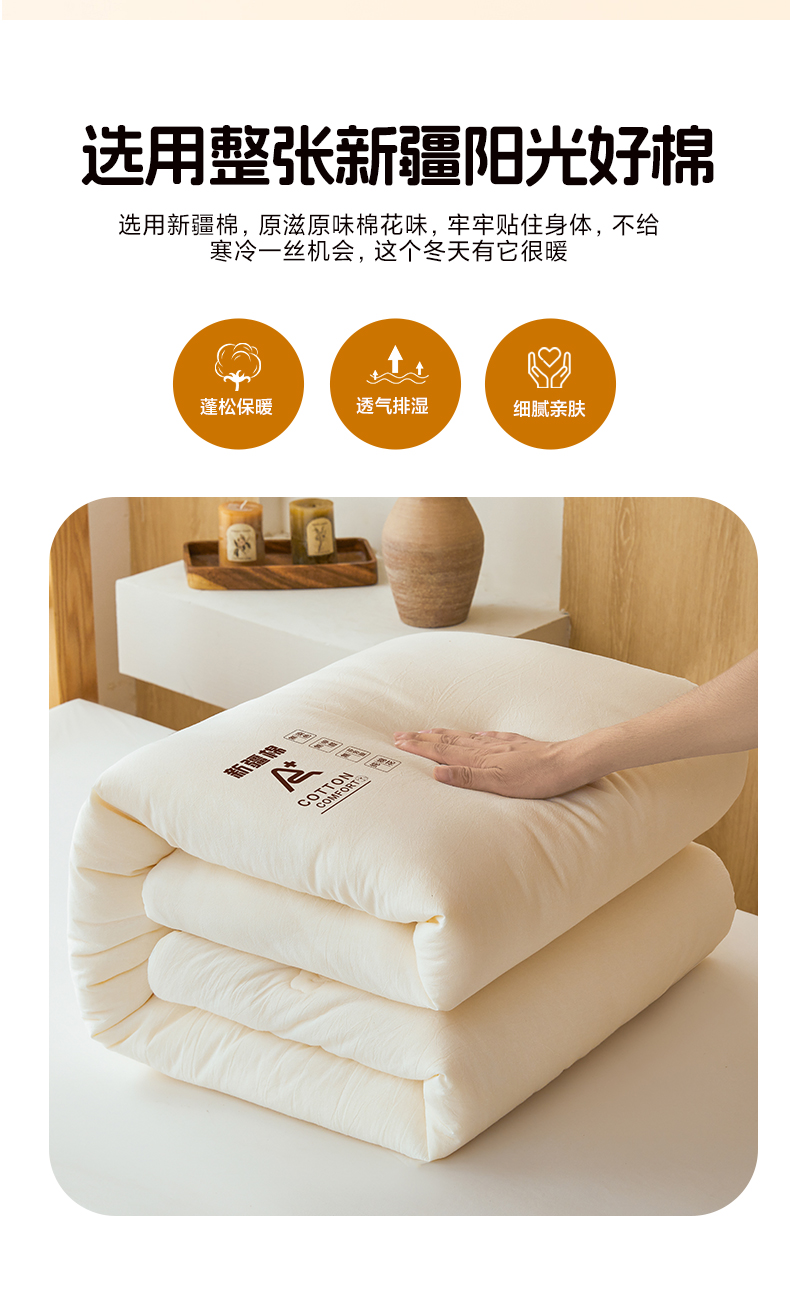 • 91家纺网 家纺一手货源 找家纺 (专版花型,翻版必究)维洋家纺 2025新款百分百新疆棉花学生被被子被芯 棉花被-珍珠白