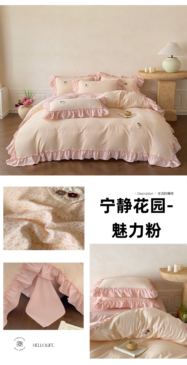 当前位置: 91家纺网 > 商品网购 > 床品套件 > 四件套 > 梦舒羽2025新款波点花边四件套-宁静花园 宁静花园-魅力粉