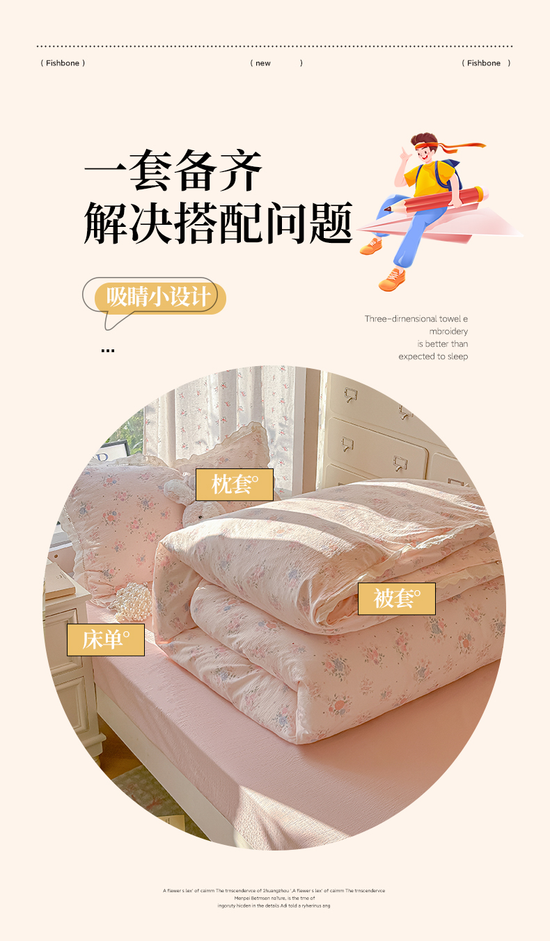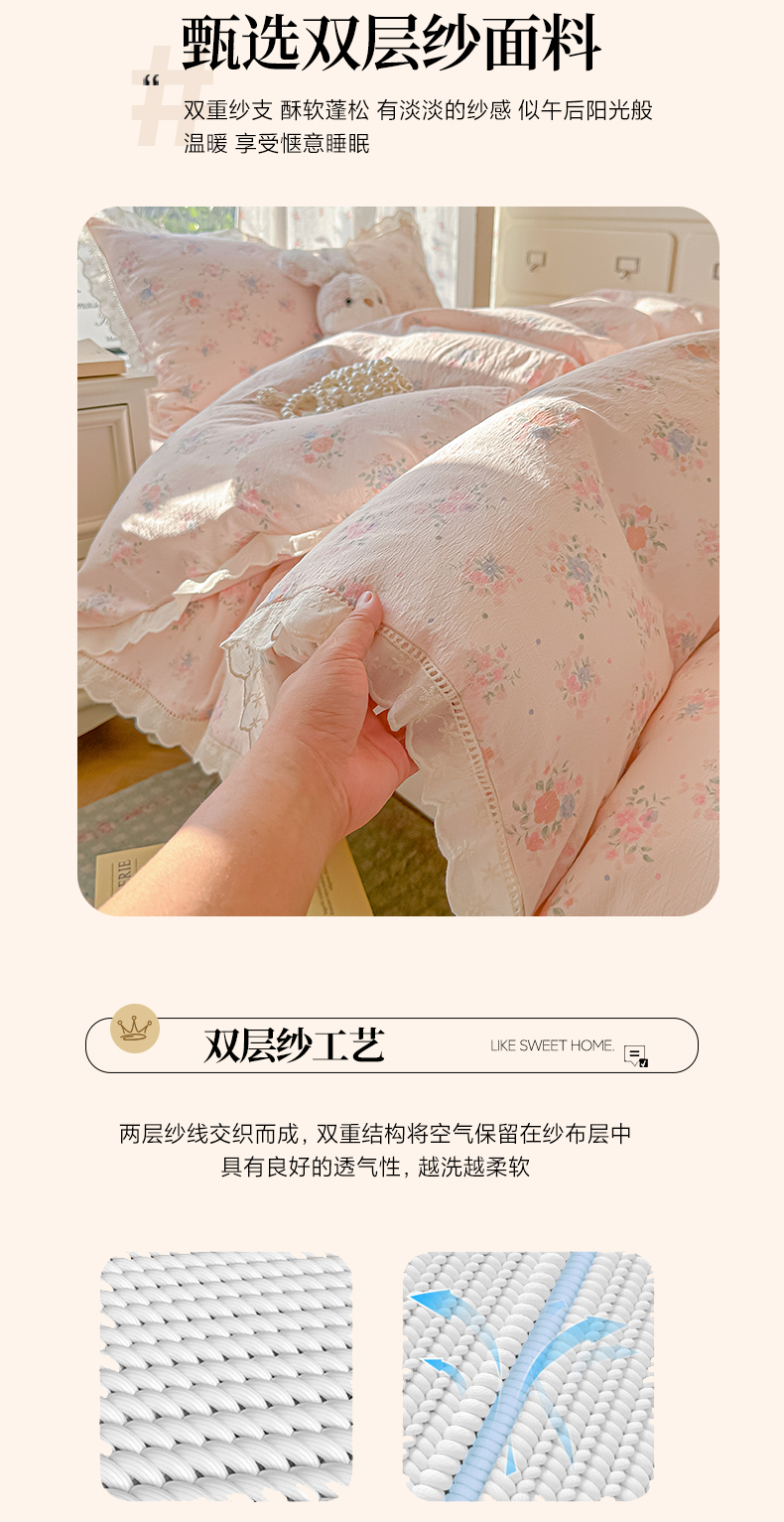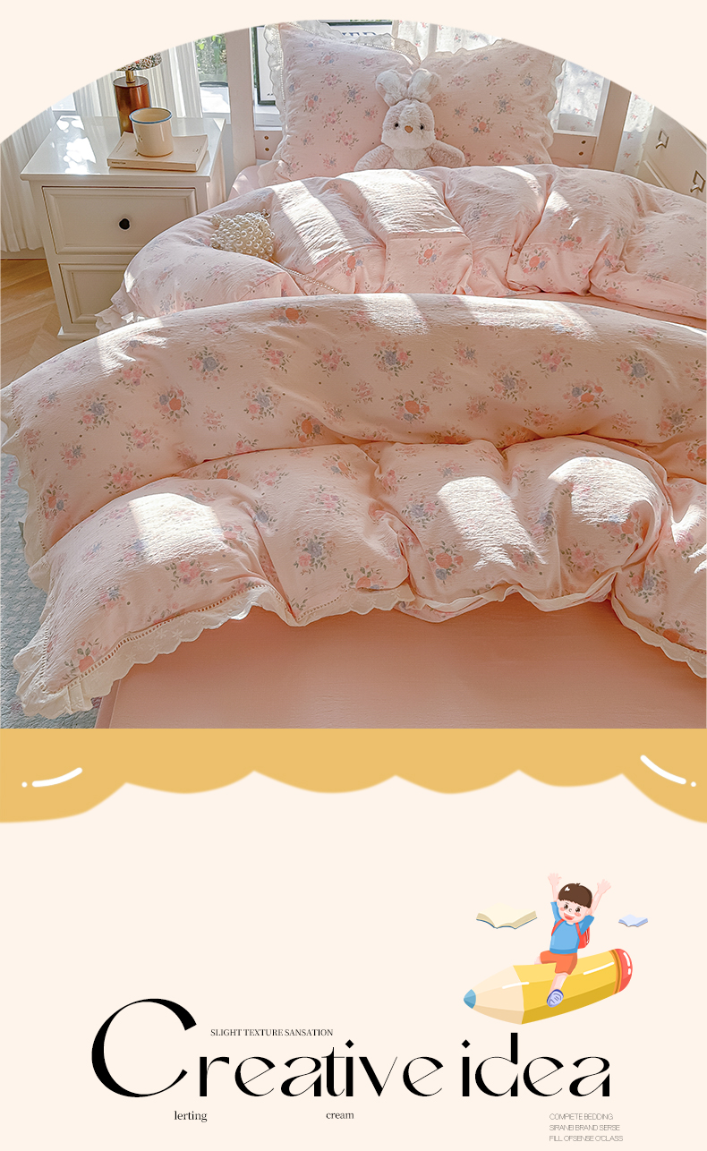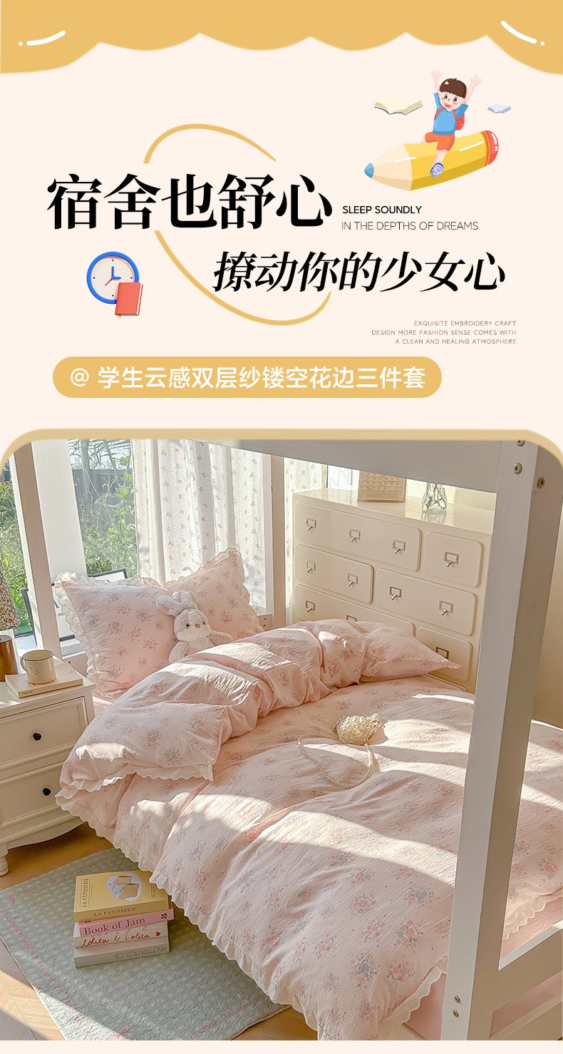 当前位置: 91家纺网 > 商品网购 > 床品套件 > 三件套 > 韩巢家纺 2025新款学生宿舍三件套上下铺学生季开学季床品 镂空花边款-芊芊花海