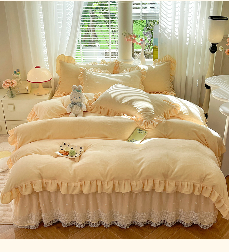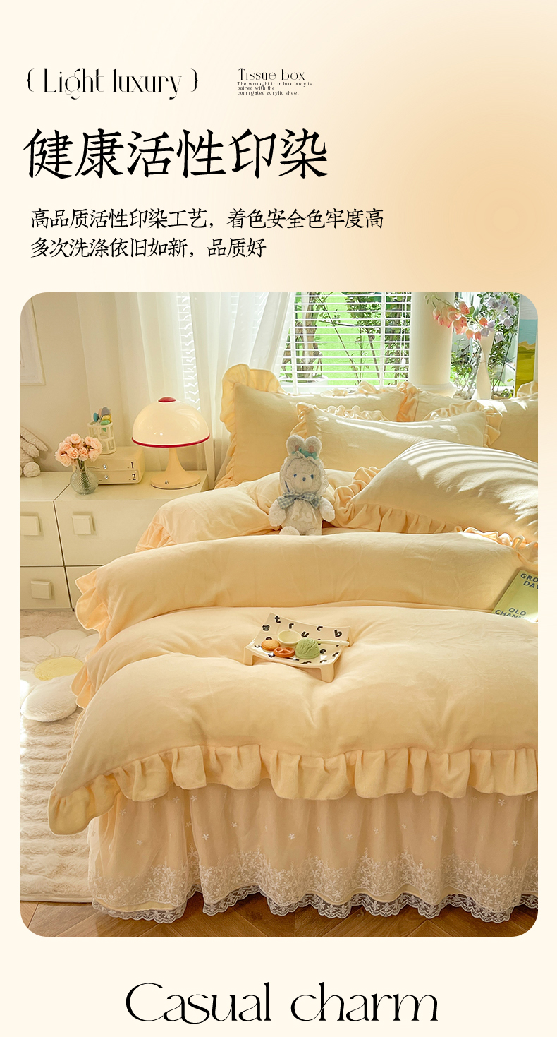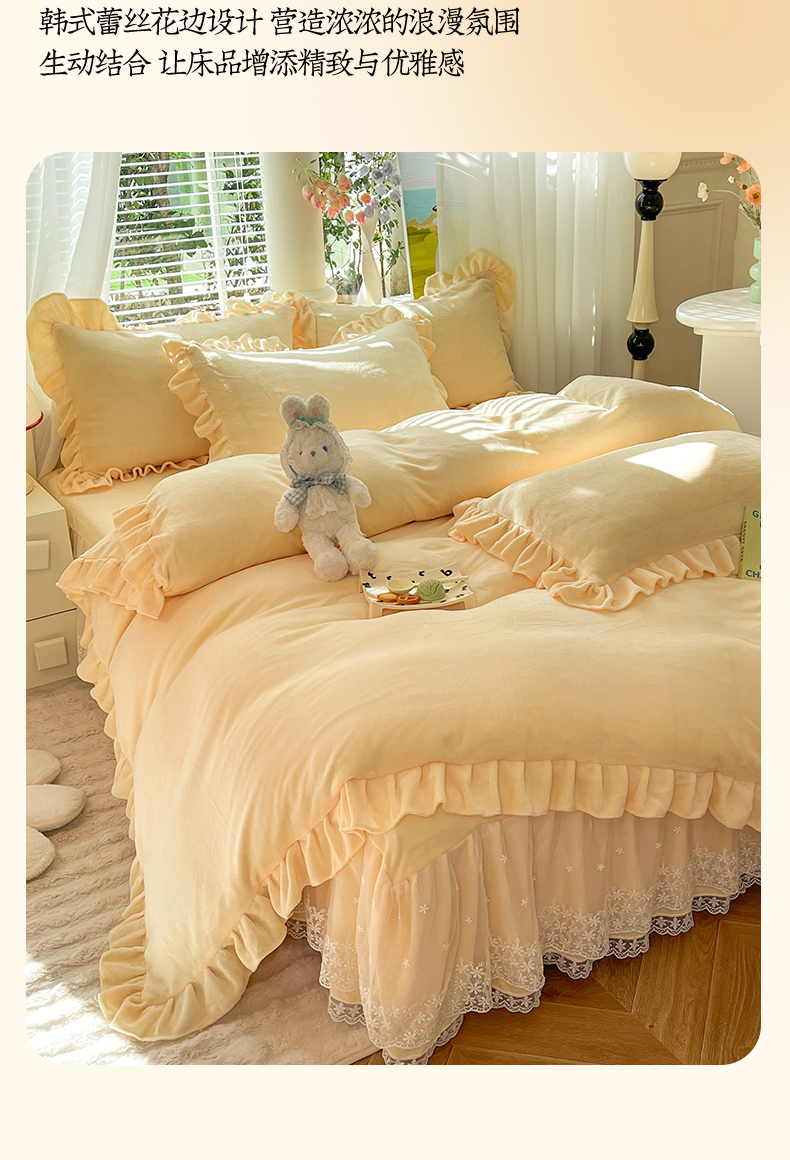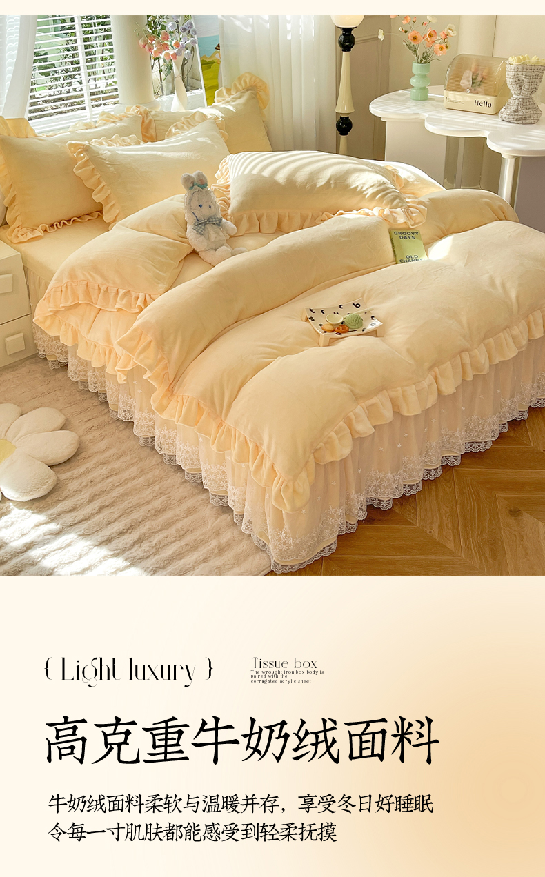 【8斤重】2025新款秋冬加厚牛奶绒床裙款四件套法式浪漫蕾丝花边工艺-遇见系列 遇见-暖黄