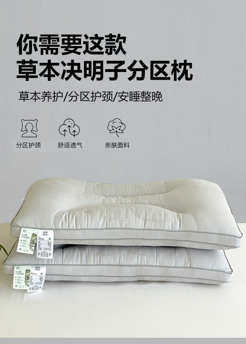 当前位置: 91家纺网 > 商品网购 > 枕头/枕芯/保健枕/颈椎枕 > 普通枕芯 > 爱尚家枕芯 2025新款草本决明子分区枕枕头枕芯 白 48*74cm/只