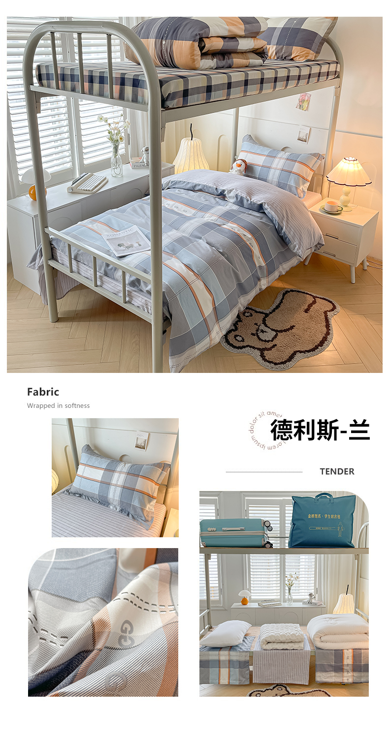 当前位置: 91家纺网 > 商品网购 > 床品套件 > 三件套 > 慕木家纺 2025新款12868全棉印花学生上下铺三件套大礼包系列 德利斯-兰