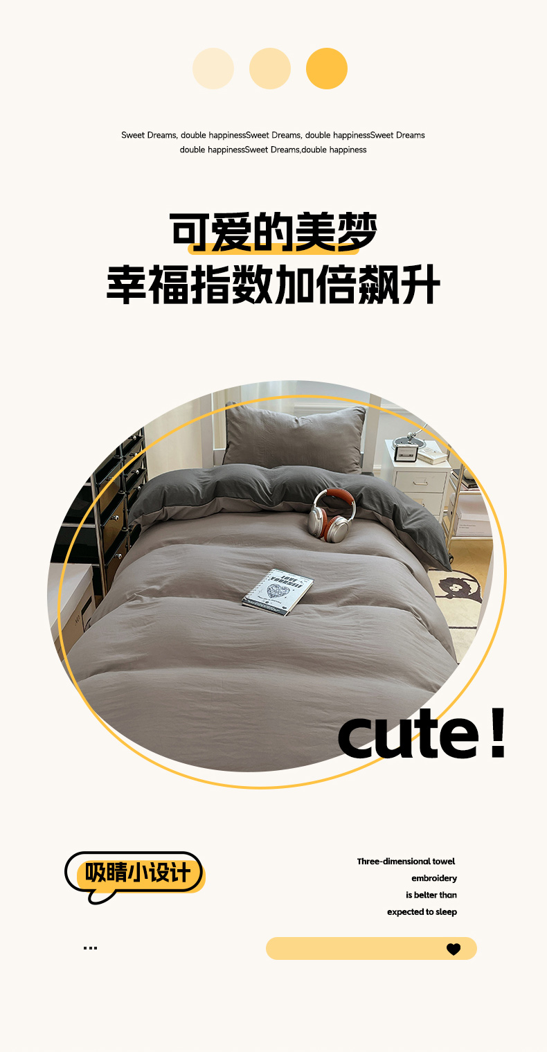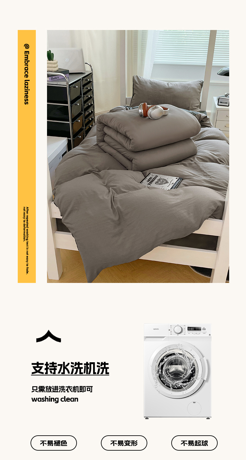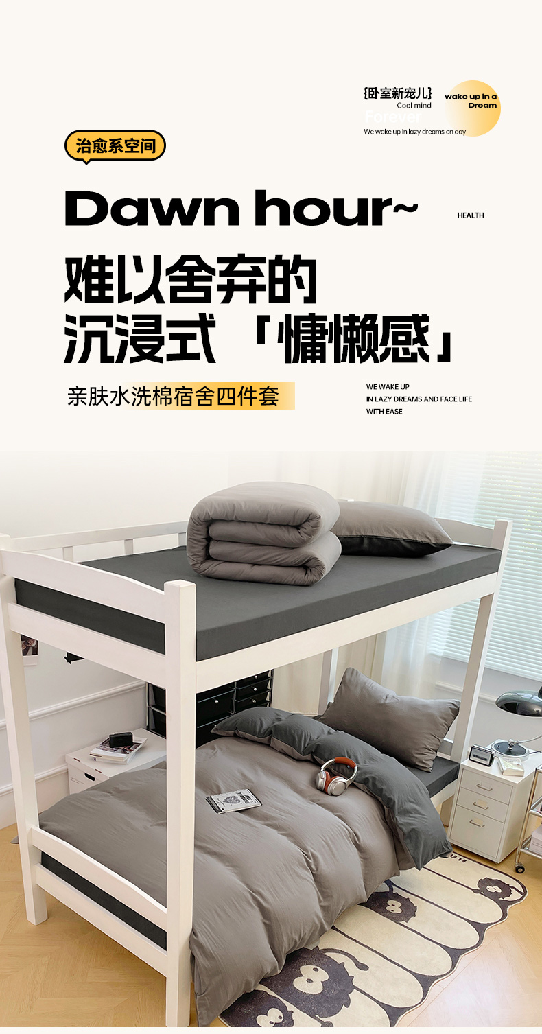 商品名称:(总)梦卓家纺 2025新款学生宿舍上下铺纯色水洗棉三件套