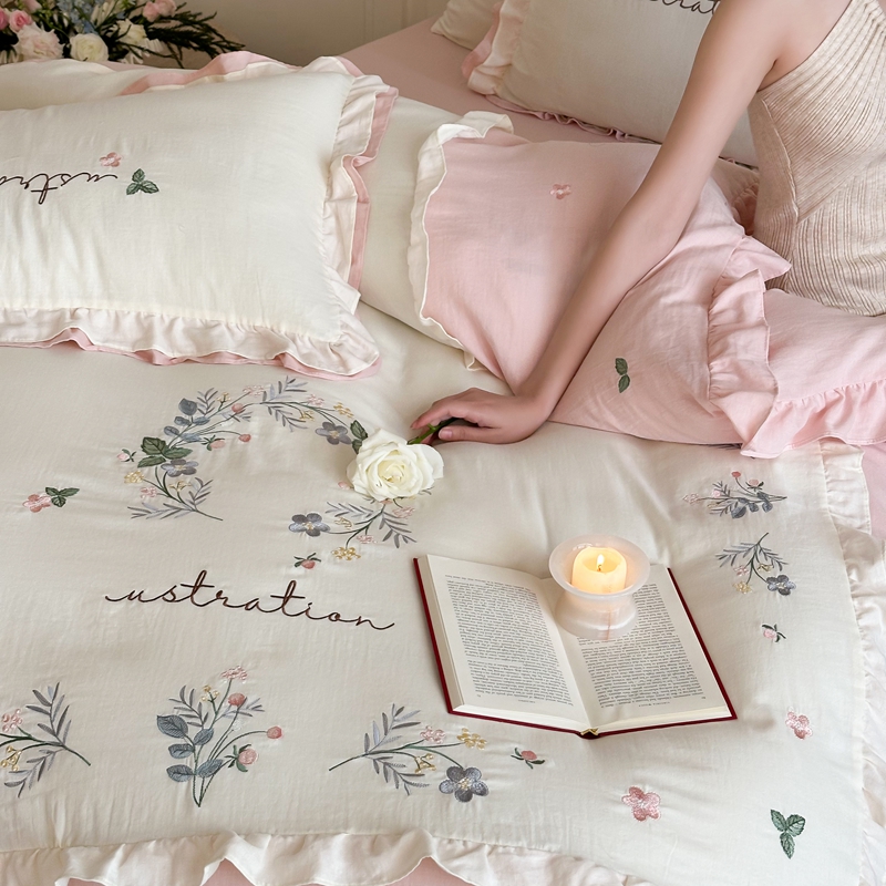 商品名称:西西家居 2025新款超柔有氧全棉纯棉双层纱四件套-春日浅樱 春日浅樱-兰