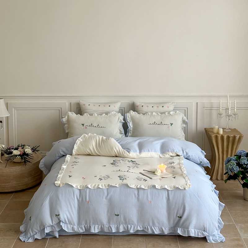 西西家居 2025新款超柔有氧全棉纯棉双层纱四件套-春日浅樱 春日浅樱-兰