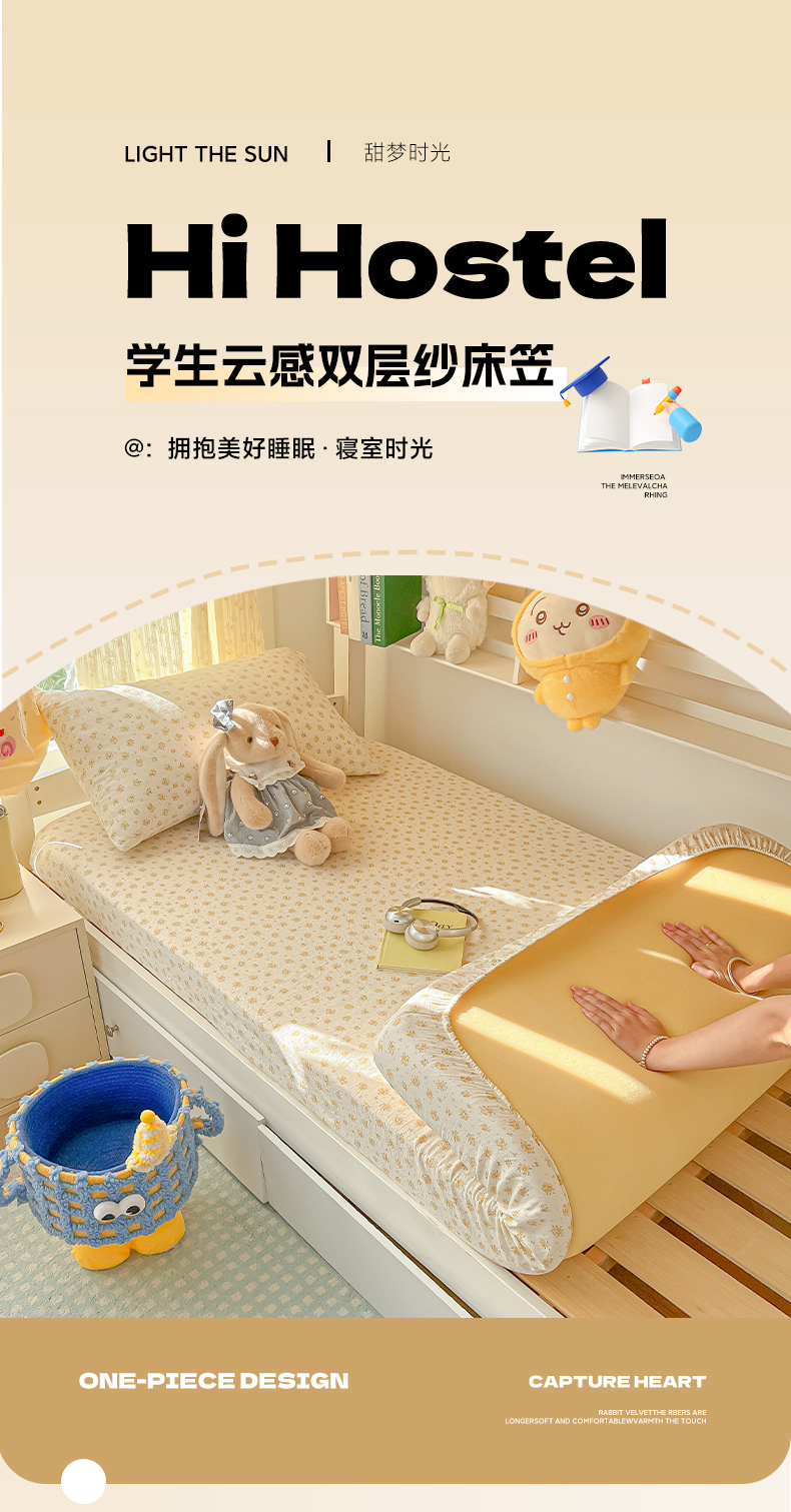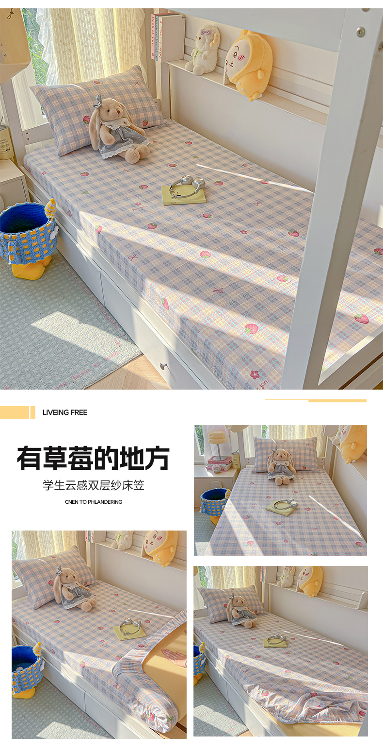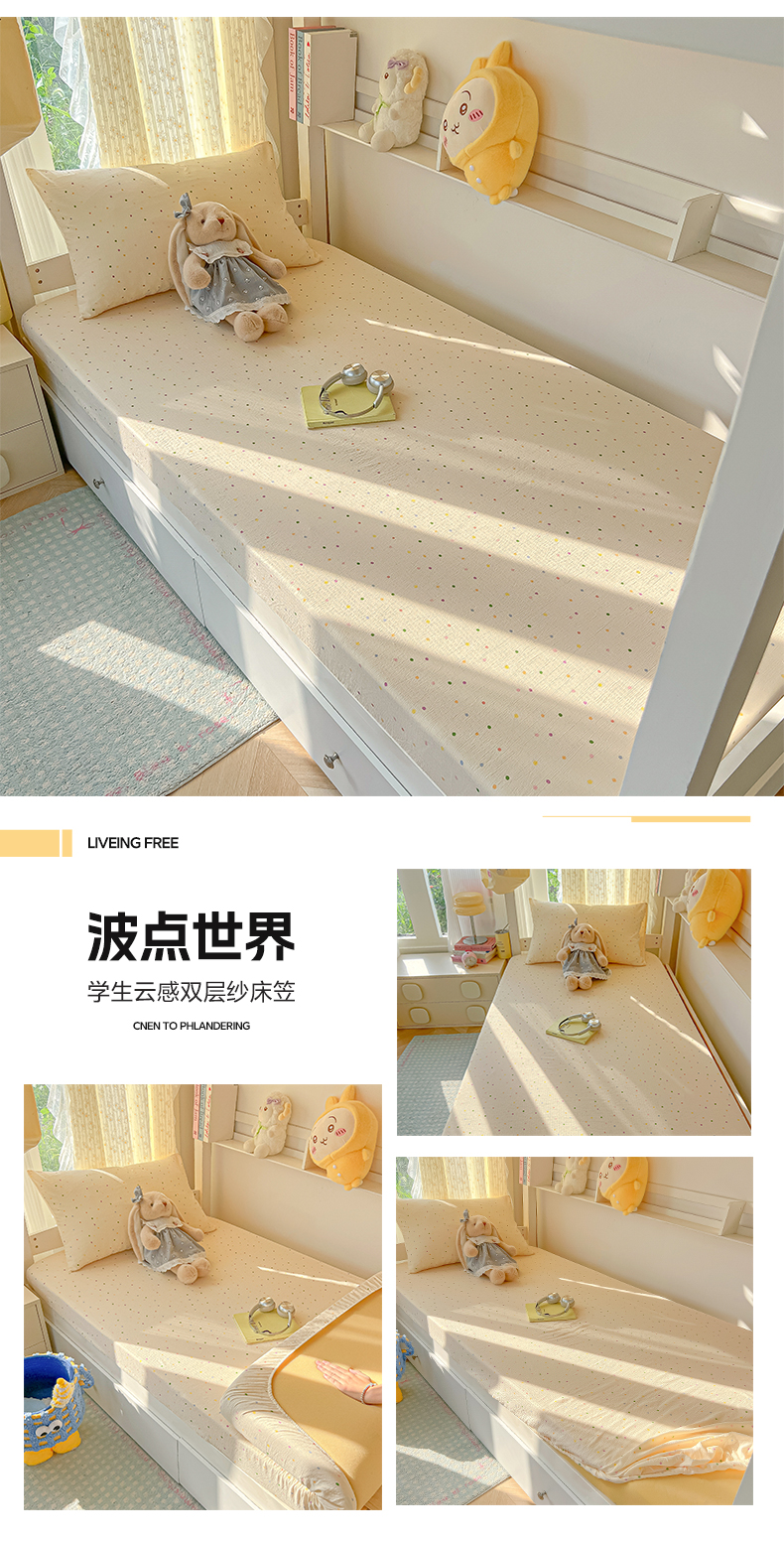 • 91家纺网 家纺一手货源 找家纺 韩巢家纺 2025新款双层纱学生宿舍寝室床笠单件单床笠上下铺防滑床单床垫套 橘子海