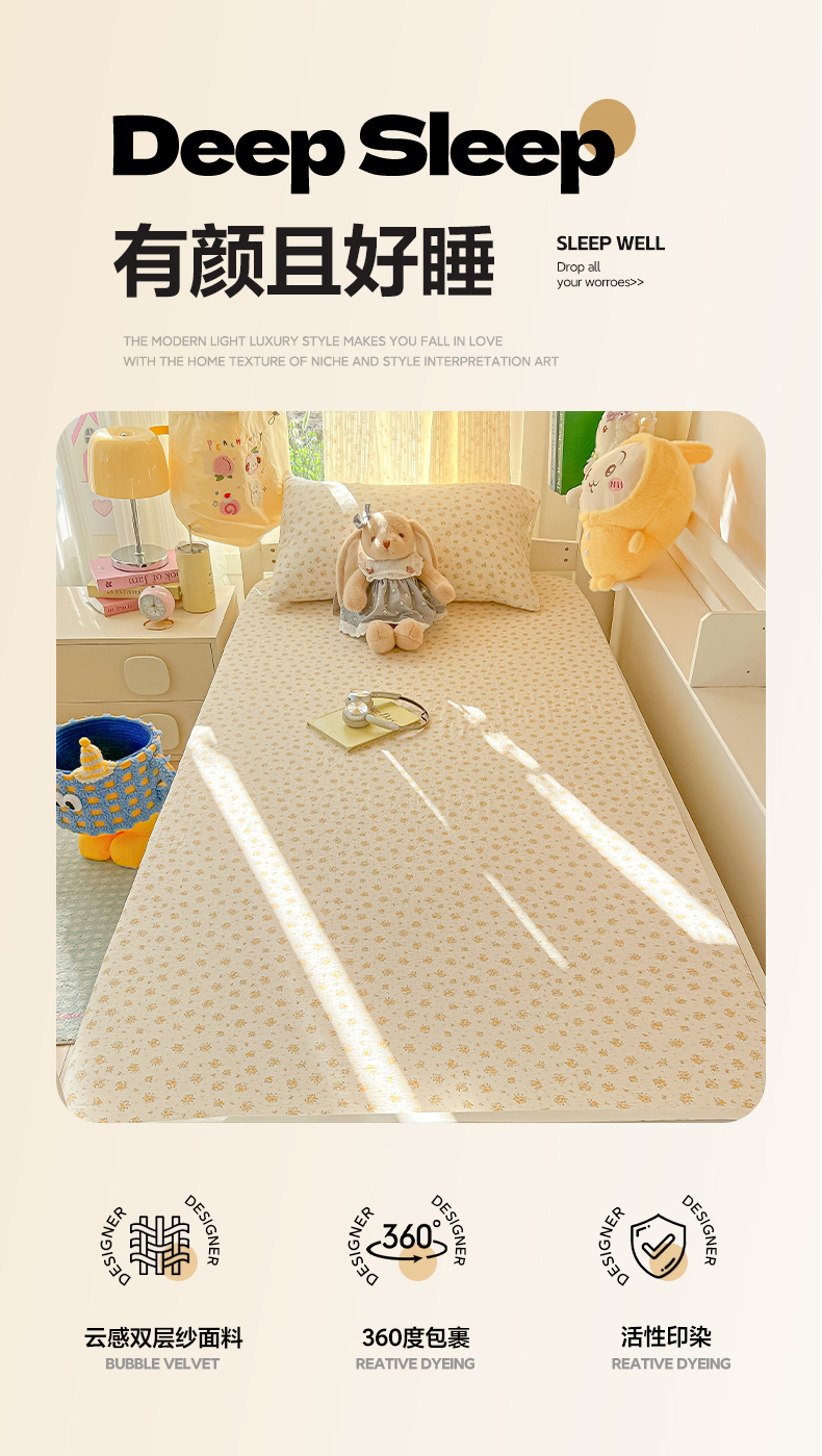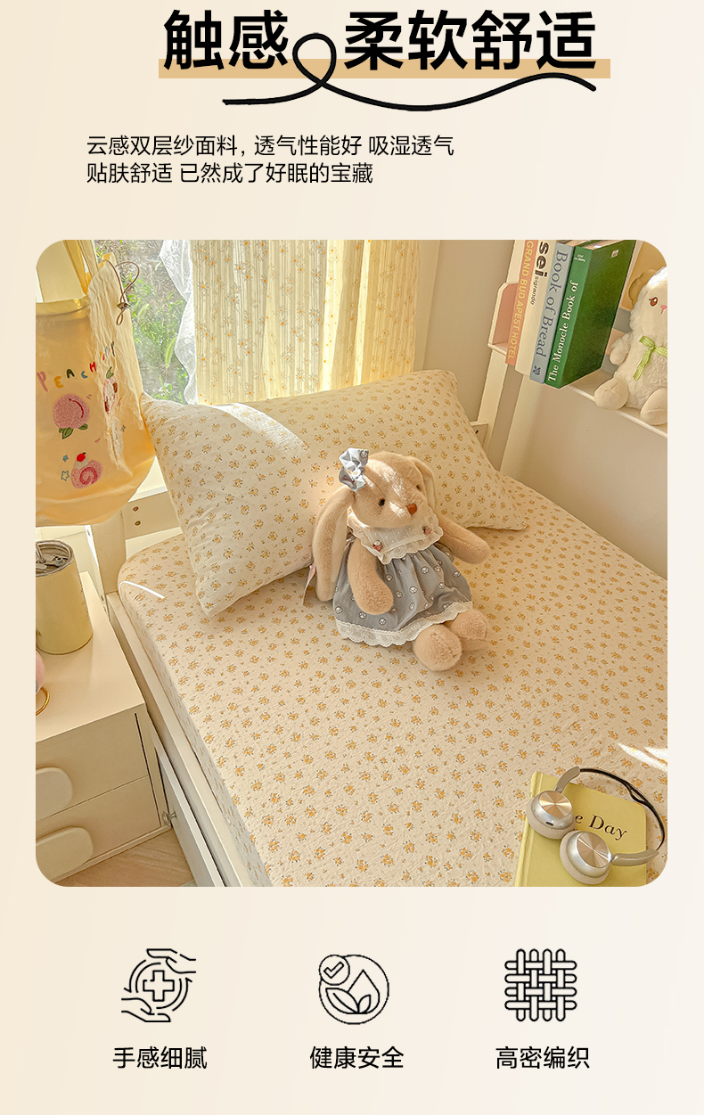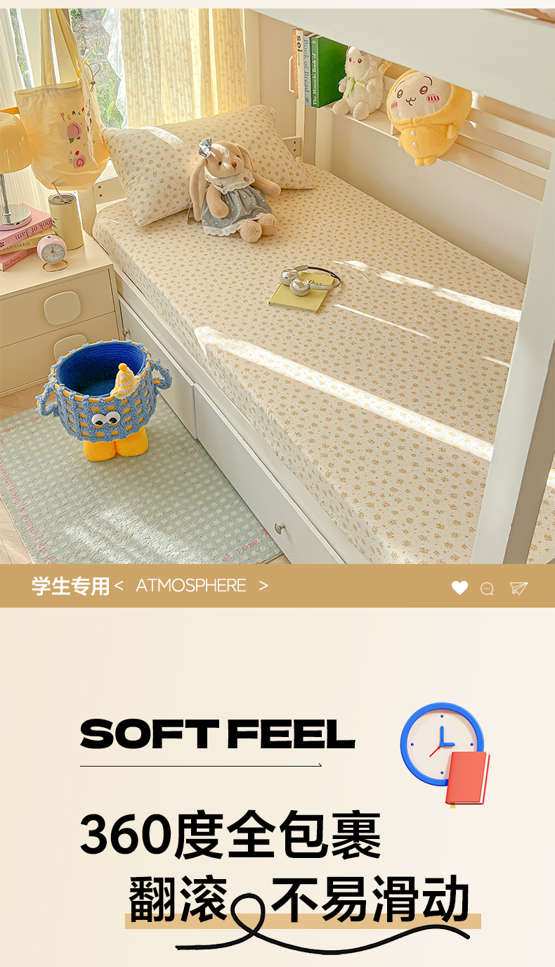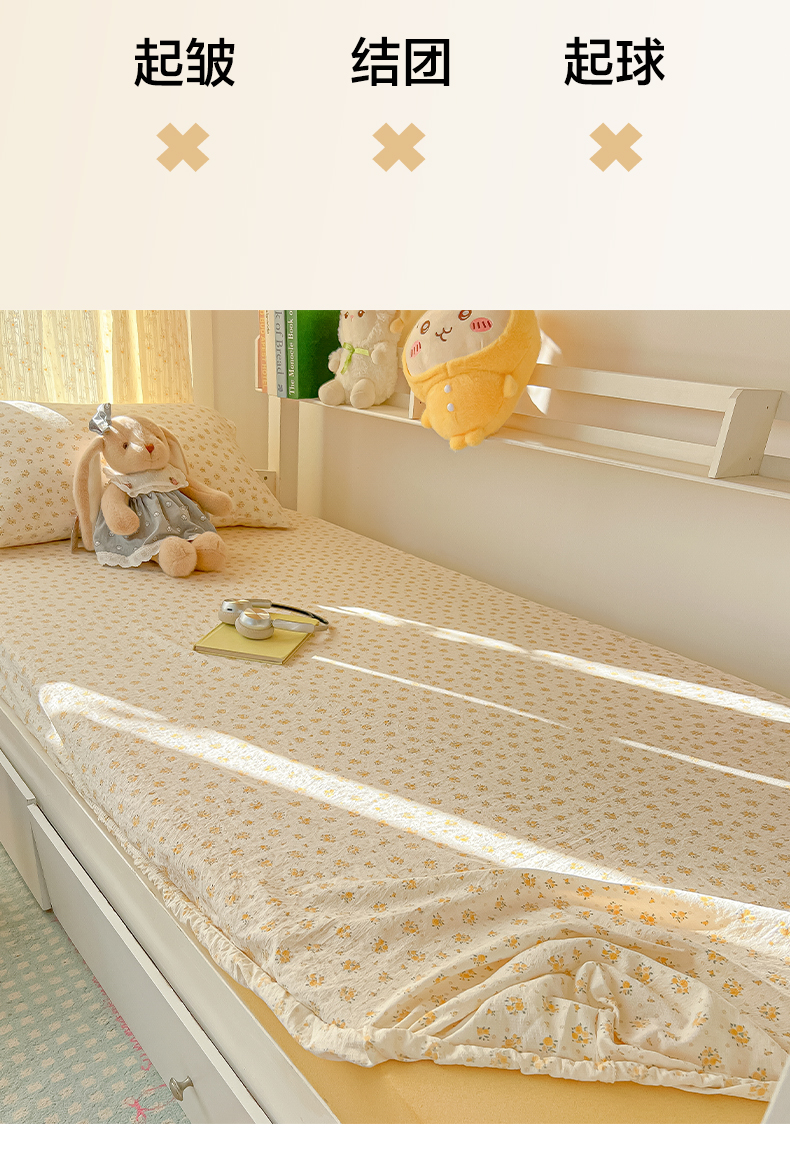 • 91家纺网 家纺一手货源 找家纺 韩巢家纺 2025新款双层纱学生宿舍寝室床笠单件单床笠上下铺防滑床单床垫套 橘子海