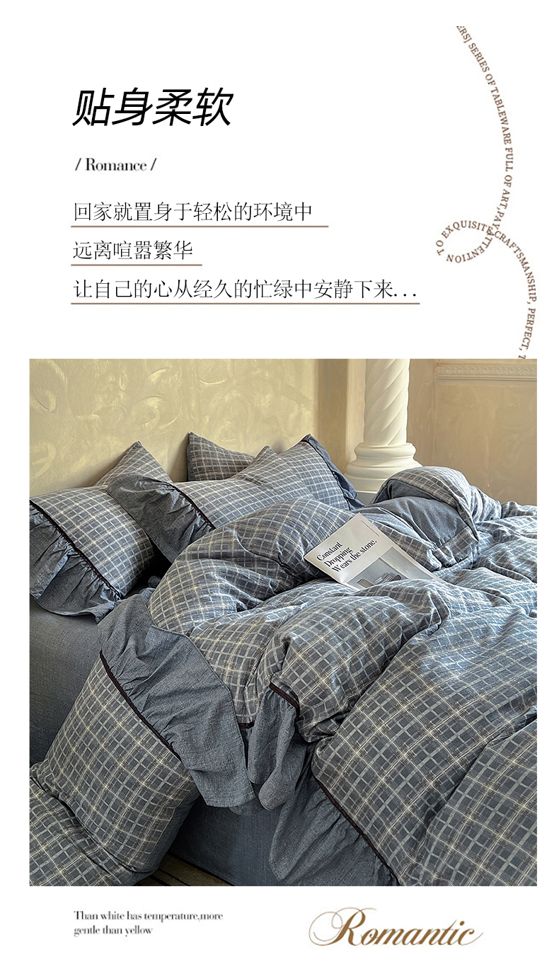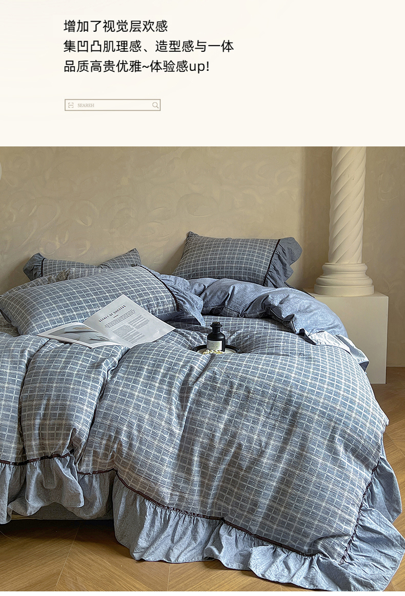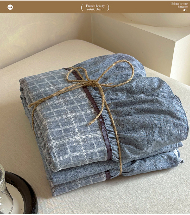 当前位置: 91家纺网 > 商品网购 > 床品套件 > 四件套 > 其它四件套 > 春光里 2025新款高克重亚麻皱皱纱四件套 蓝调