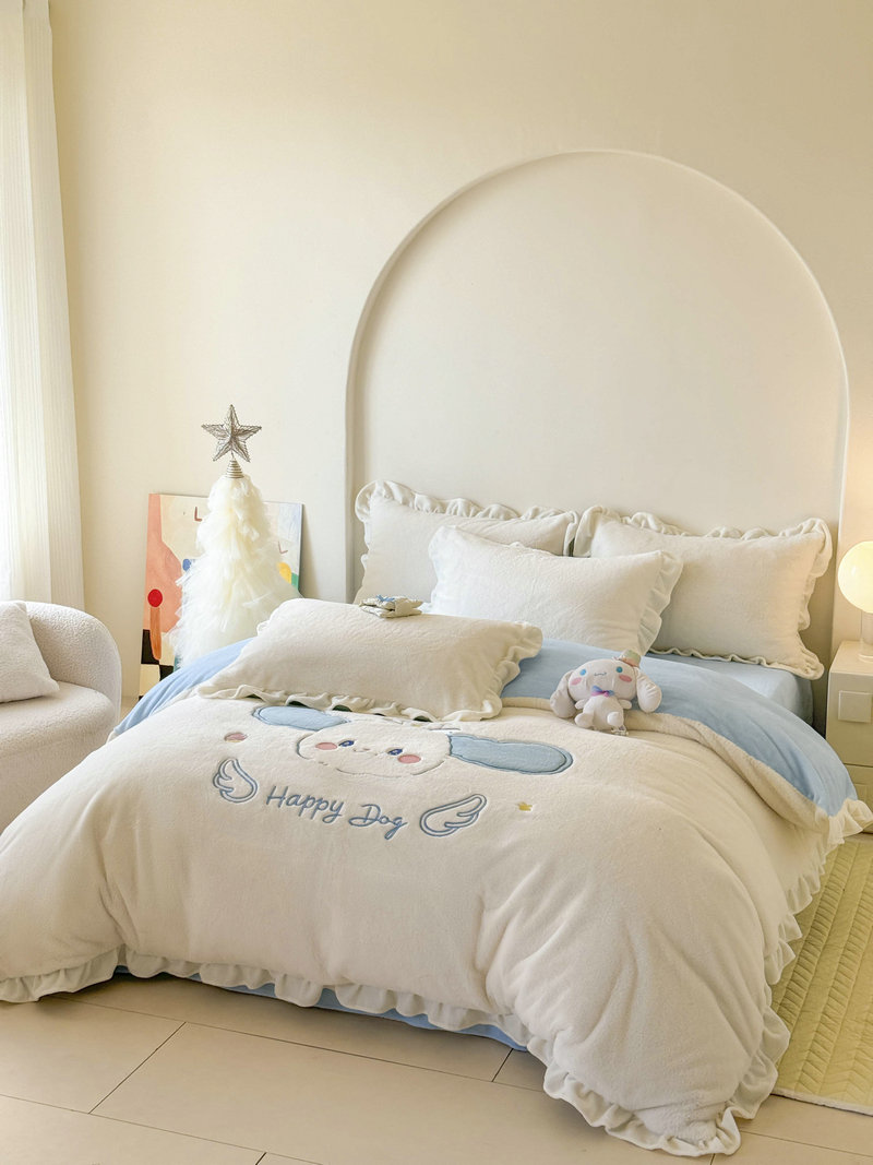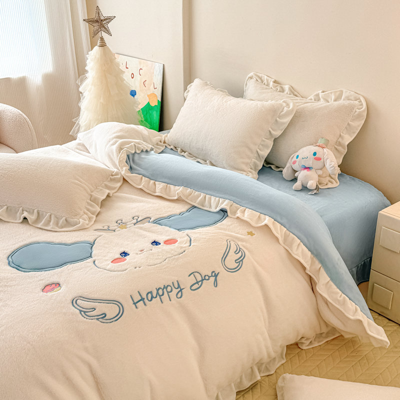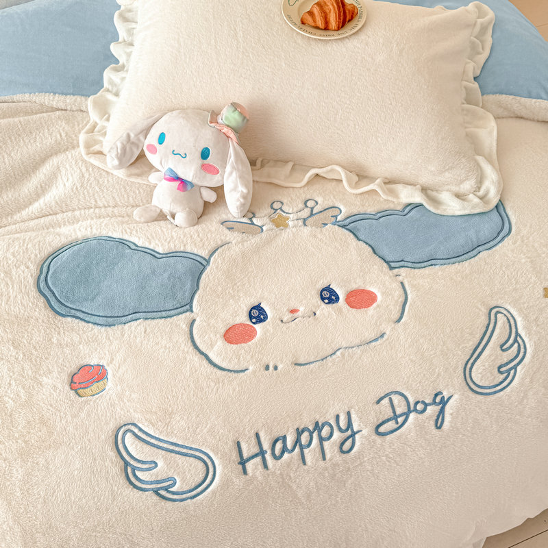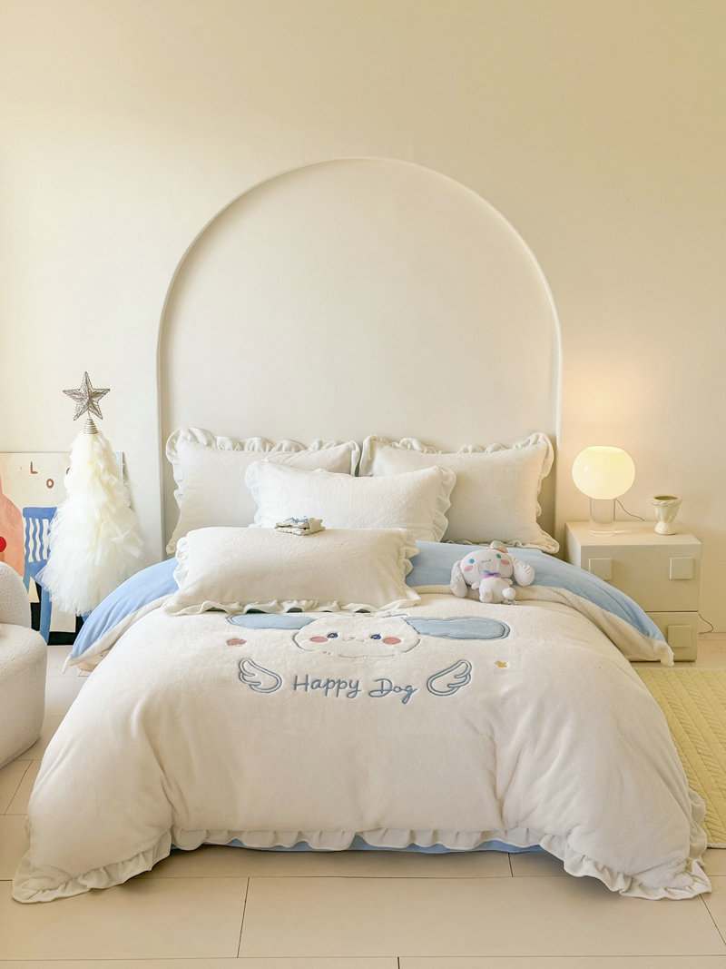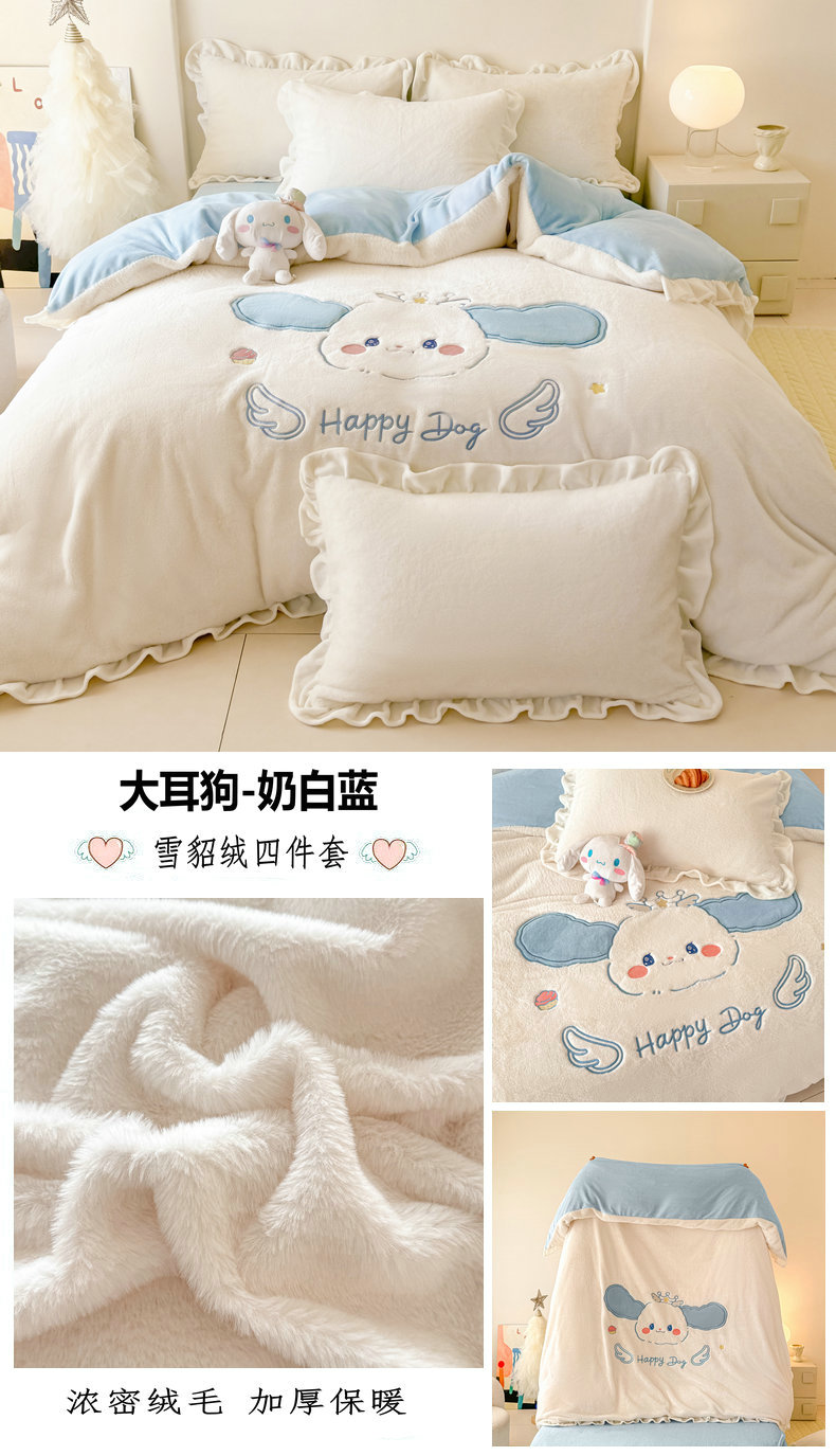 当前位置: 91家纺网 > 商品网购 > 床品套件 > 四件套 > 牛奶绒四件套 > 宝薇 2025新款高克重绒兔兔雪貂绒贴布绣四件套 大耳狗-奶白蓝
