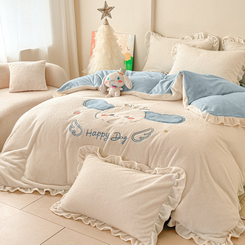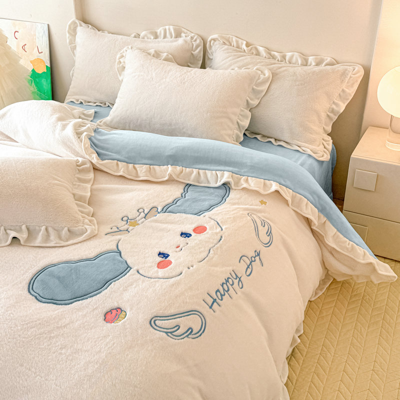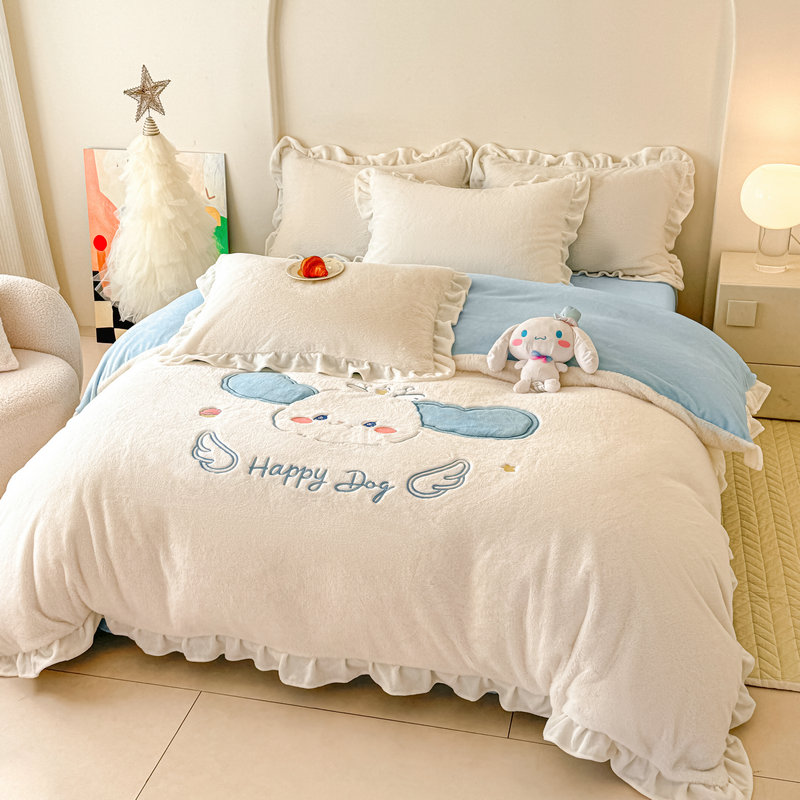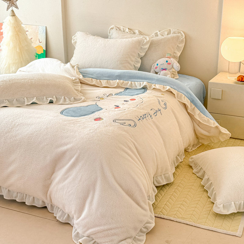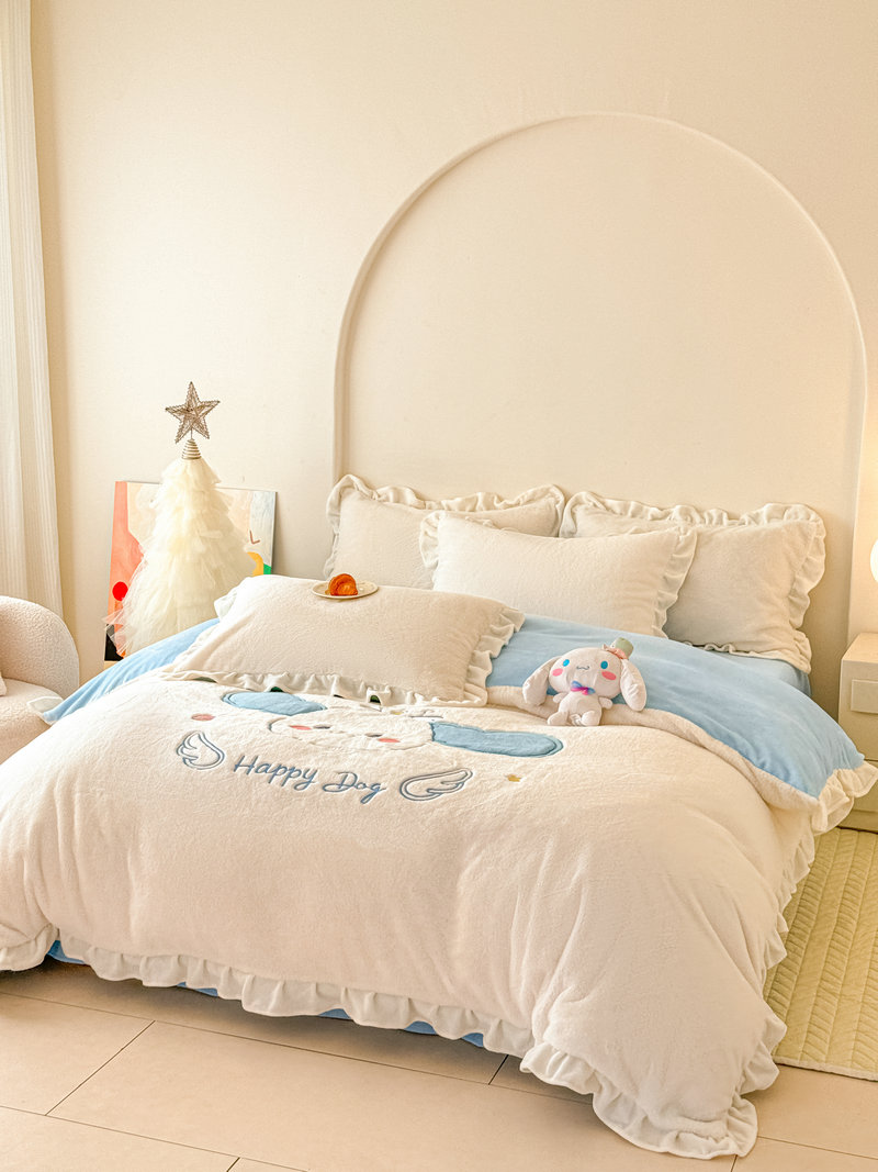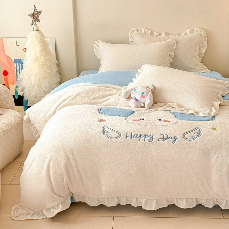 当前位置: 91家纺网 > 商品网购 > 床品套件 > 四件套 > 牛奶绒四件套 > 宝薇 2025新款高克重绒兔兔雪貂绒贴布绣四件套 大耳狗-奶白蓝