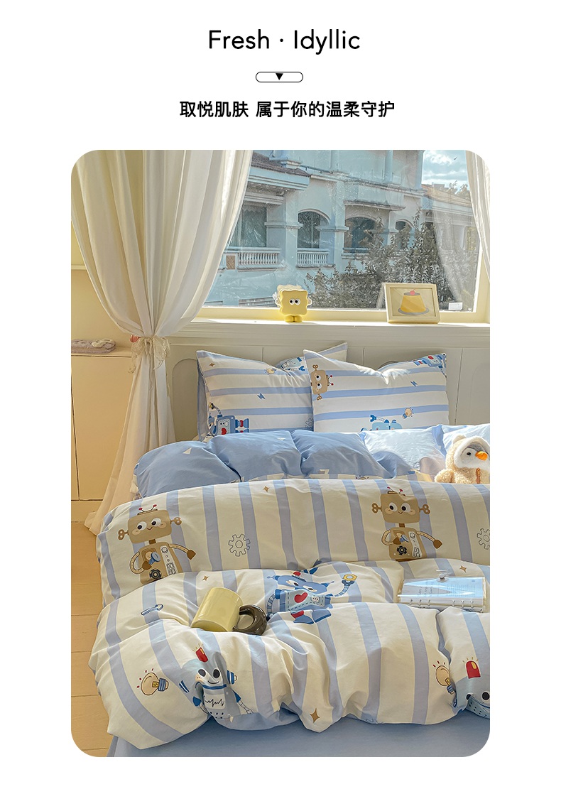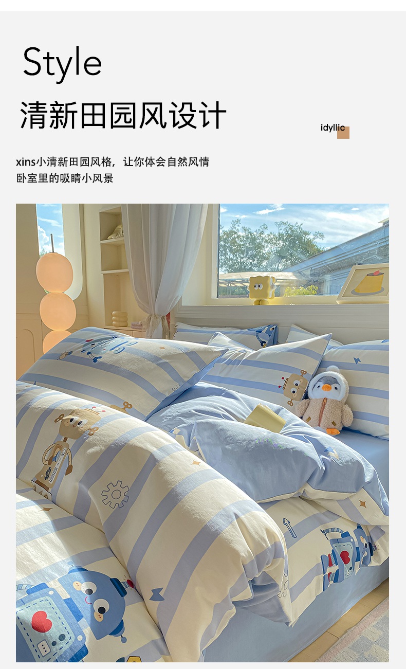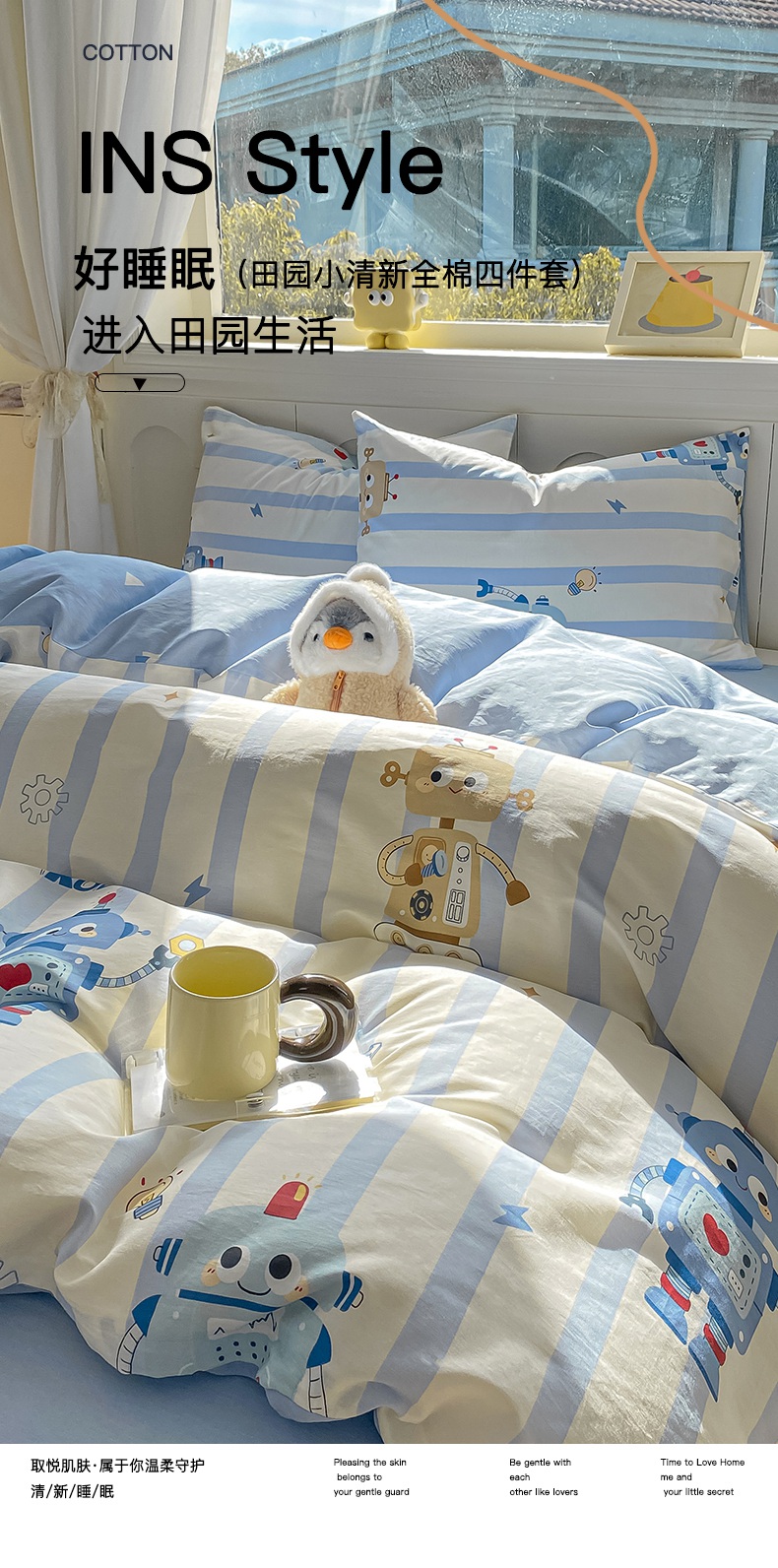 商品名称:黑马家居 2025新款13070全棉田园小清新四件套系列 机器人