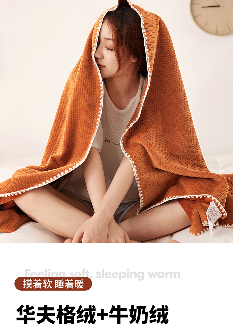 (总)莱家富 2026新款500克加厚A类华夫格牛奶绒双面毛毯轻奢休闲盖毯子多尺寸多功能午睡办,组合图仅做展示,都市灰,湖蓝,焦糖,明黄,奶白,嫩粉,苹果绿