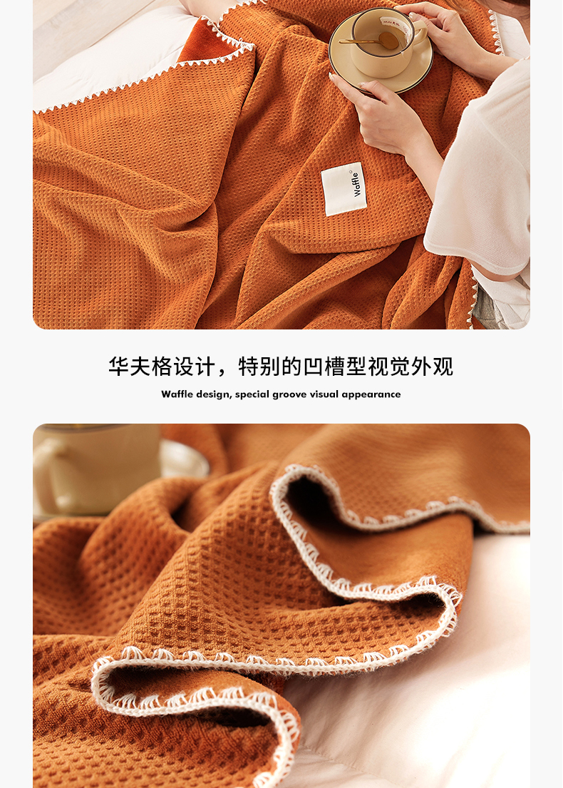 莱家富 2026新款跨境A类华夫格牛奶绒双面毛毯轻奢休闲盖毯子多功能午睡办公室用毯 黄色