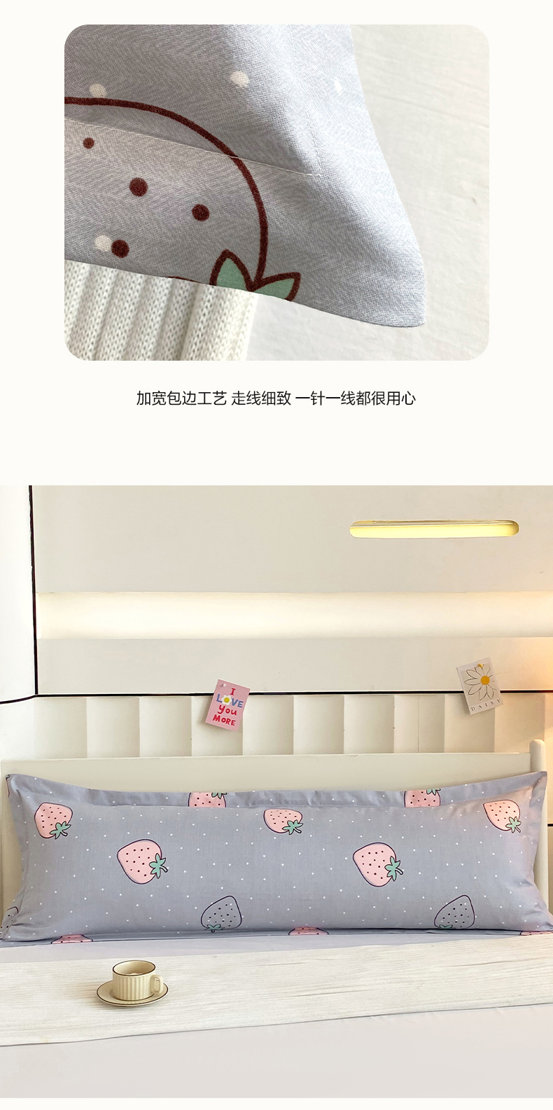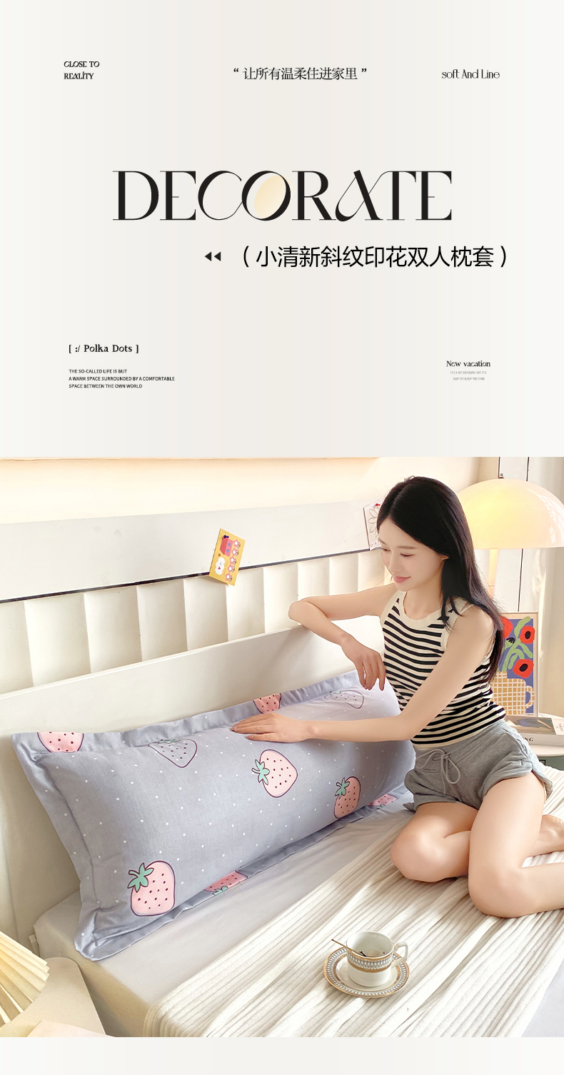 商品名称:雨彤家纺 2025新款小清新斜纹印花双人枕套 草莓圣代-灰