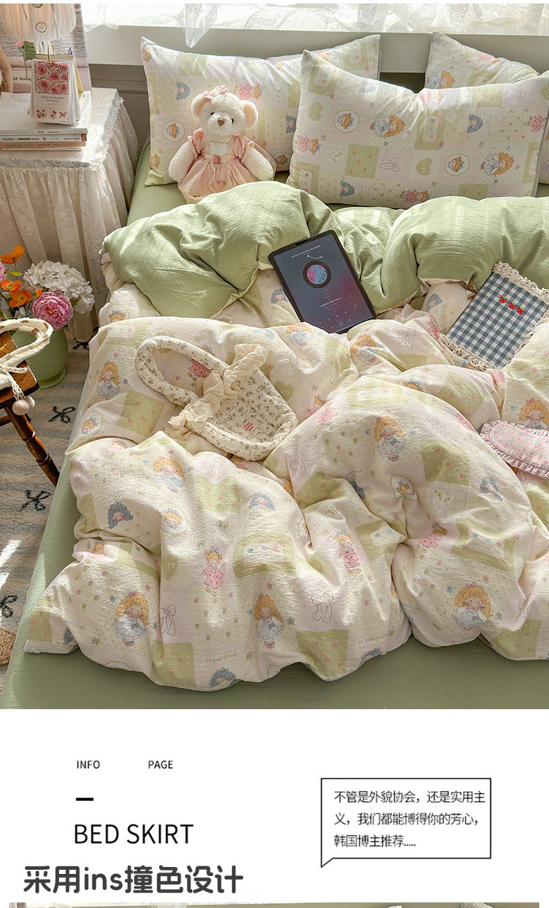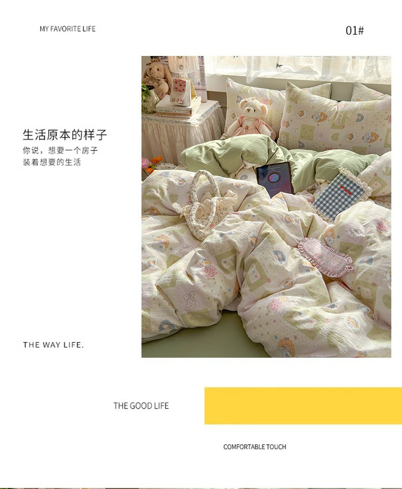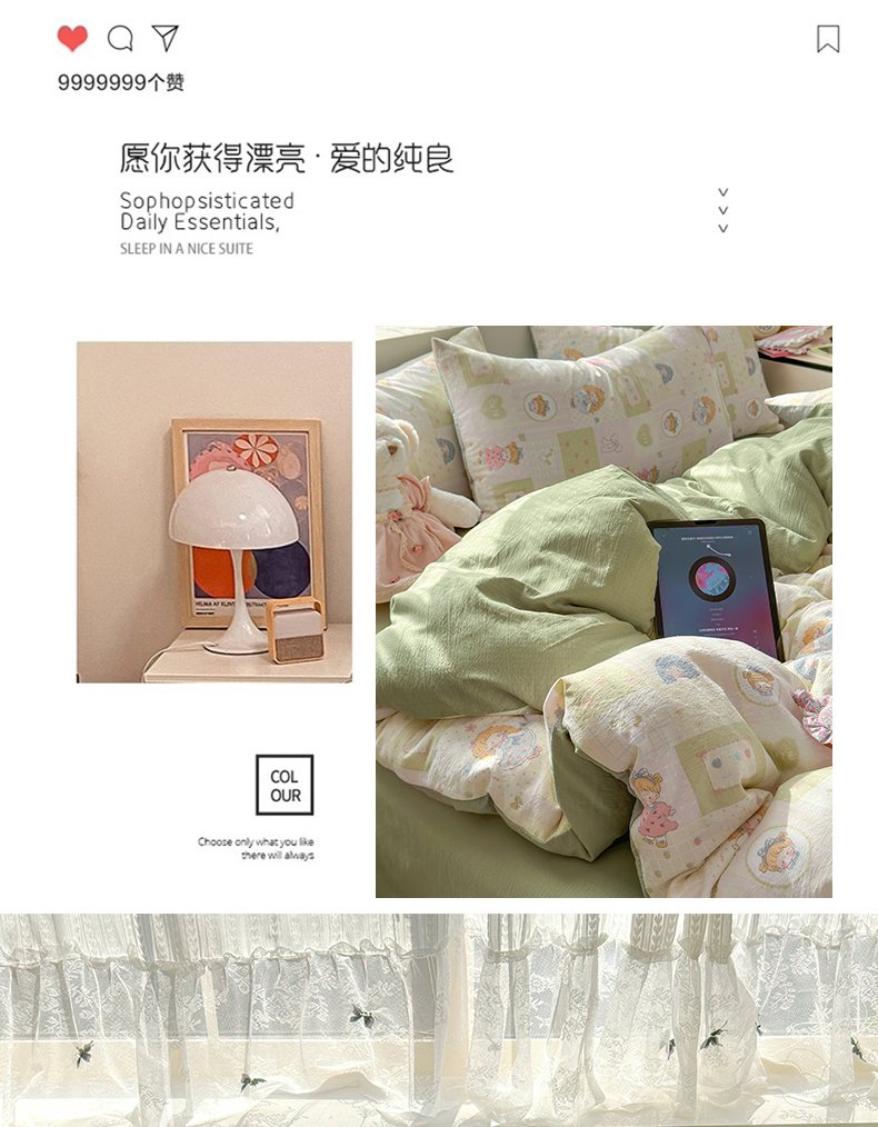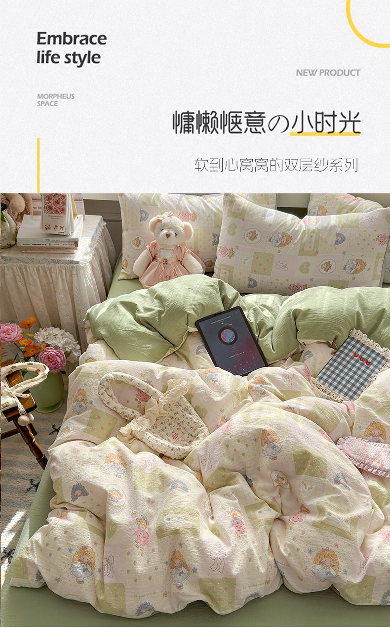 当前位置: 91家纺网 > 商品网购 > 床品套件 > 四件套 > 双层纱四件套 > 丽美人家纺 2025新款【全尺寸不断货】高克重木棉提花双层纱四件套 QB童话