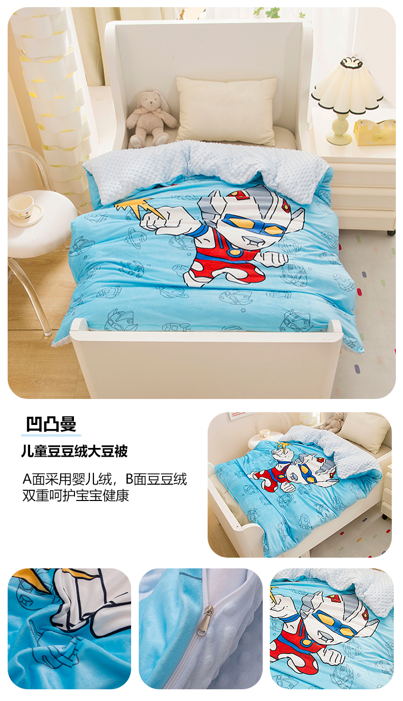 • 91家纺网 家纺一手货源 找家纺 萌宝家纺 2025新款可拆洗A类儿童豆豆绒大豆冬被儿童婴儿绒春秋被安抚被被子被芯 机甲战士