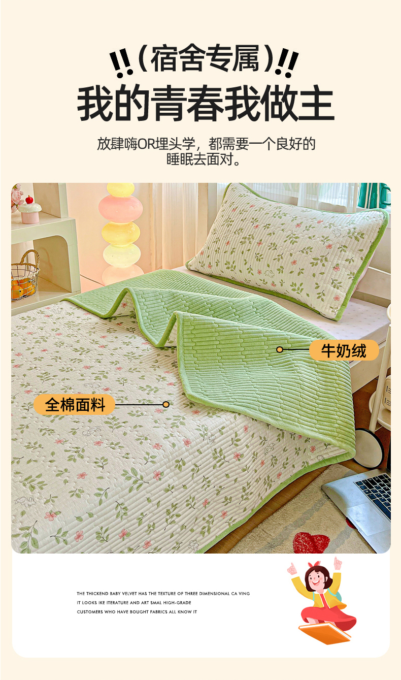 当前位置: 91家纺网 > 商品网购 > 床垫/床褥 > 普通床垫 > 恒尚居 2025新款纯棉牛奶绒学生床垫 双面两用夹棉床单床垫-秋冬款 四季通用 清新雅韵-A纯棉-B牛奶绒