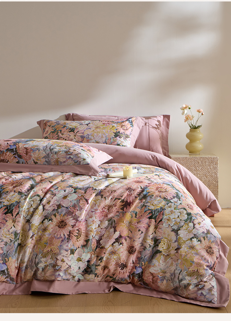 禾时 2025新款全棉纯棉贡缎数码50双股长绒棉磨毛四件套(带高档礼盒) 花香四溢