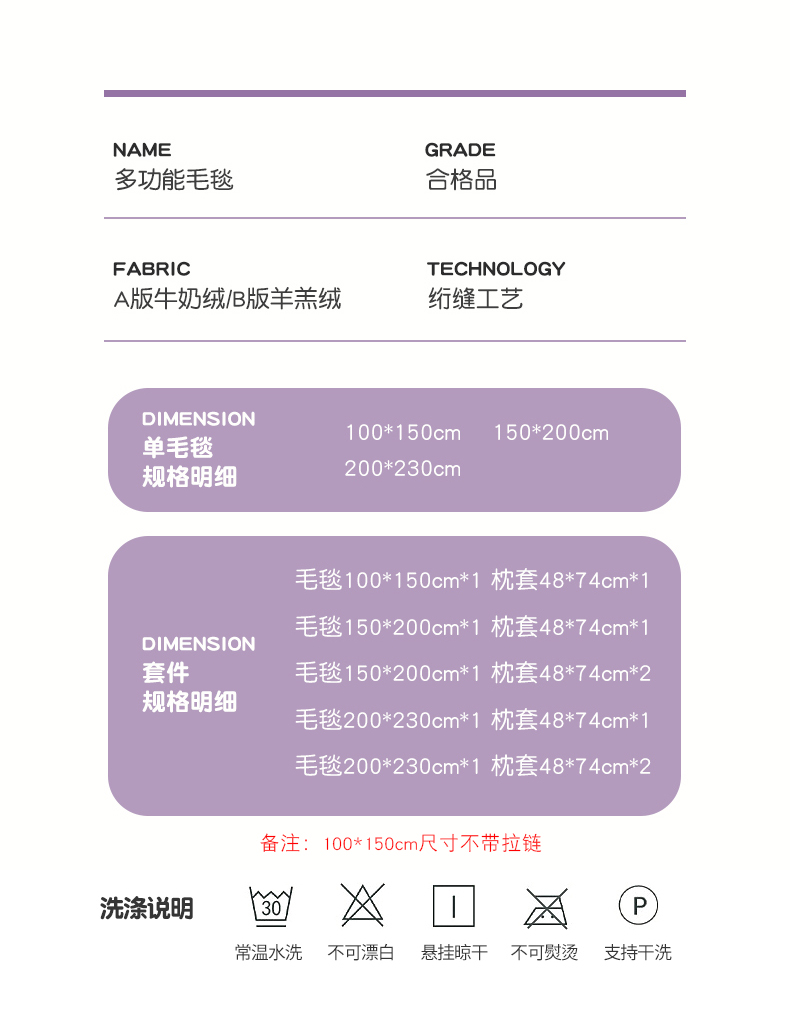 100x150cm+枕套一只(没有带拉链) | ¥55.00 |