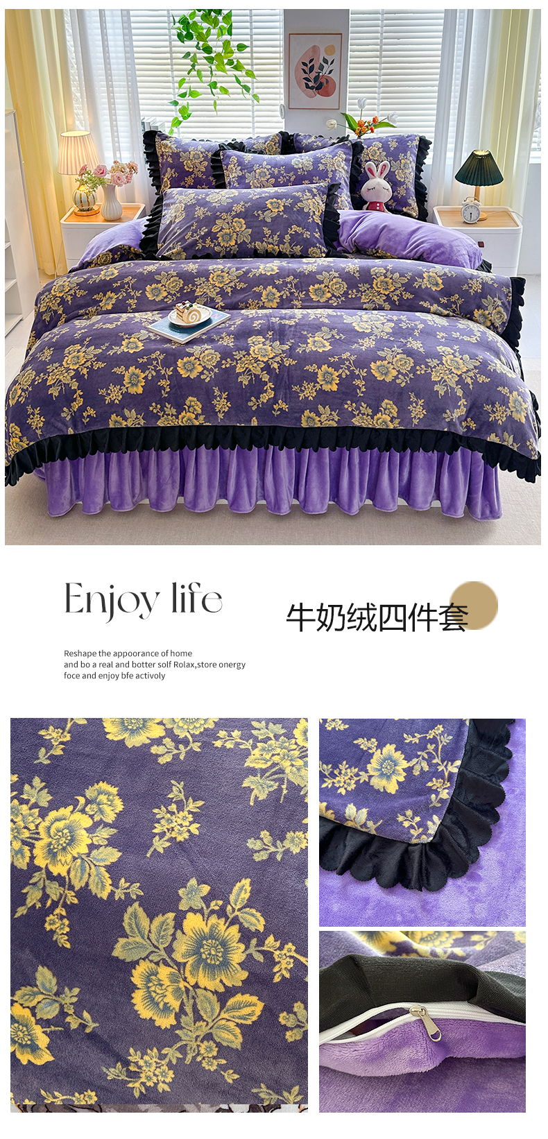 商品名称:望淮家纺 2025新款韩版牛奶绒四件套 紫气东来