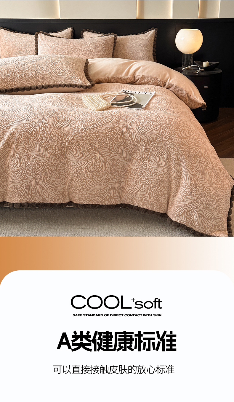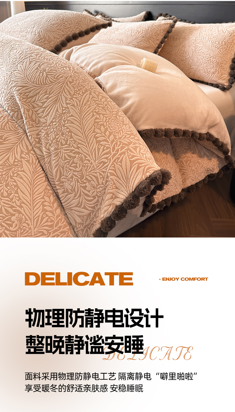 当前位置: 91家纺网 > 商品网购 > 床品套件 > 四件套 > 牛奶绒四件套 > 羚羊语家纺 2025新款雕花绒牛奶绒兔毛球四件套轻奢风立体着色烂花牛奶绒提花加厚保暖床单 蜜绒绒-香雪粉