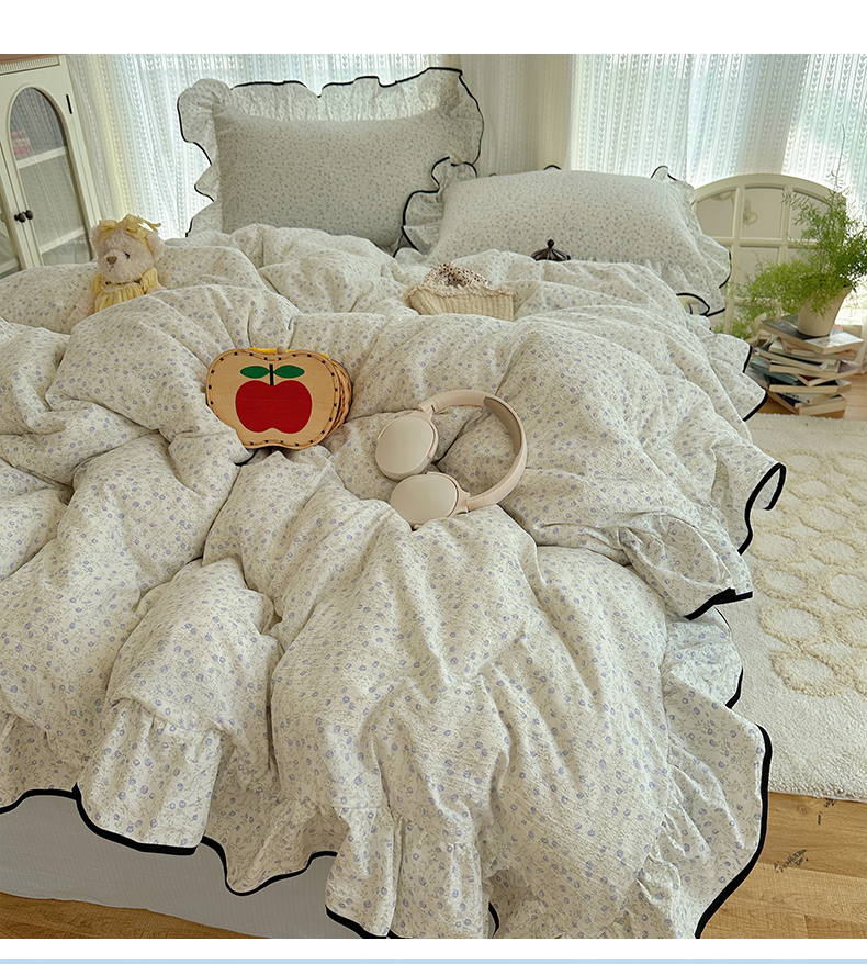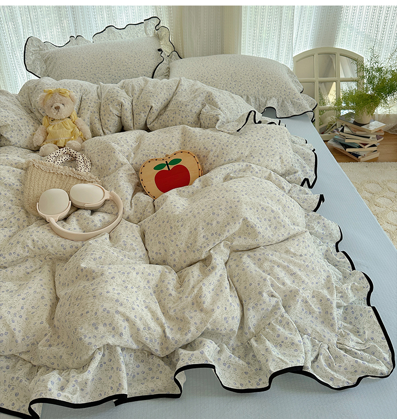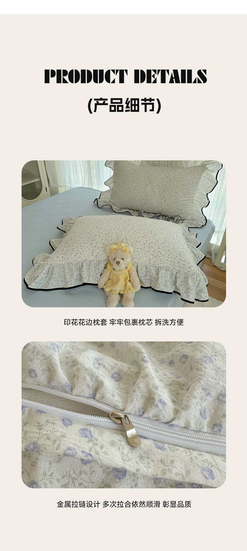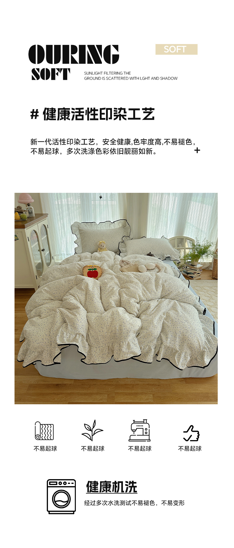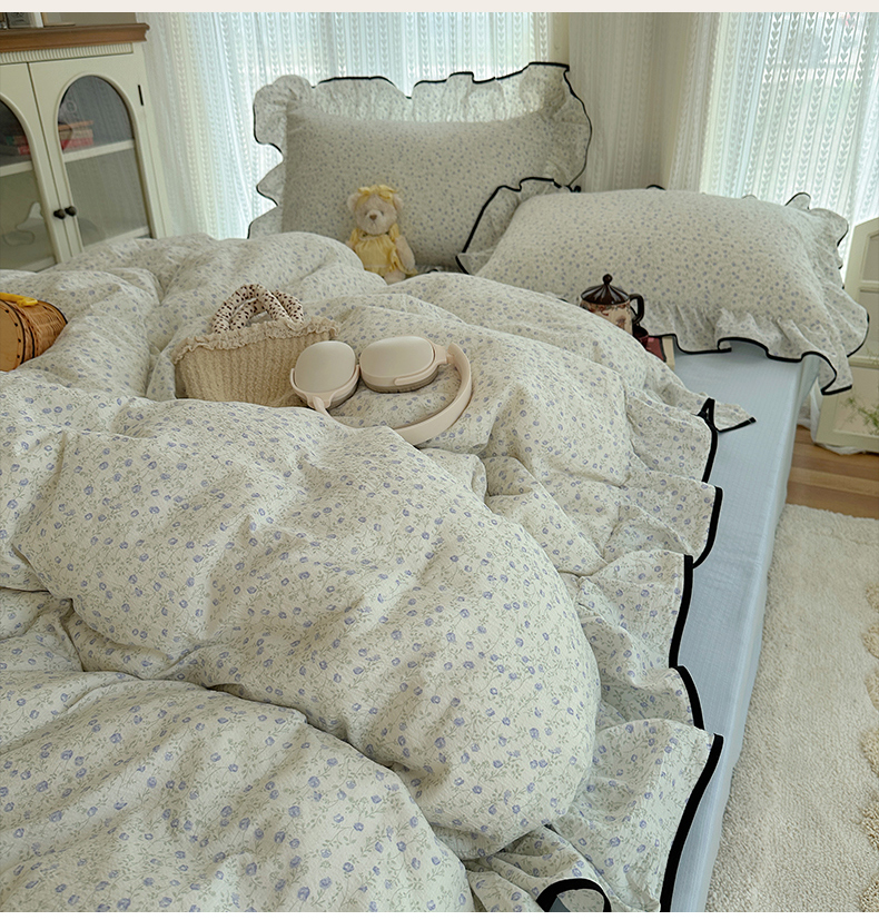 商品名称:红嘴企鹅 2025新款韩版双拼花边四件套 韩版-浅暮堇语