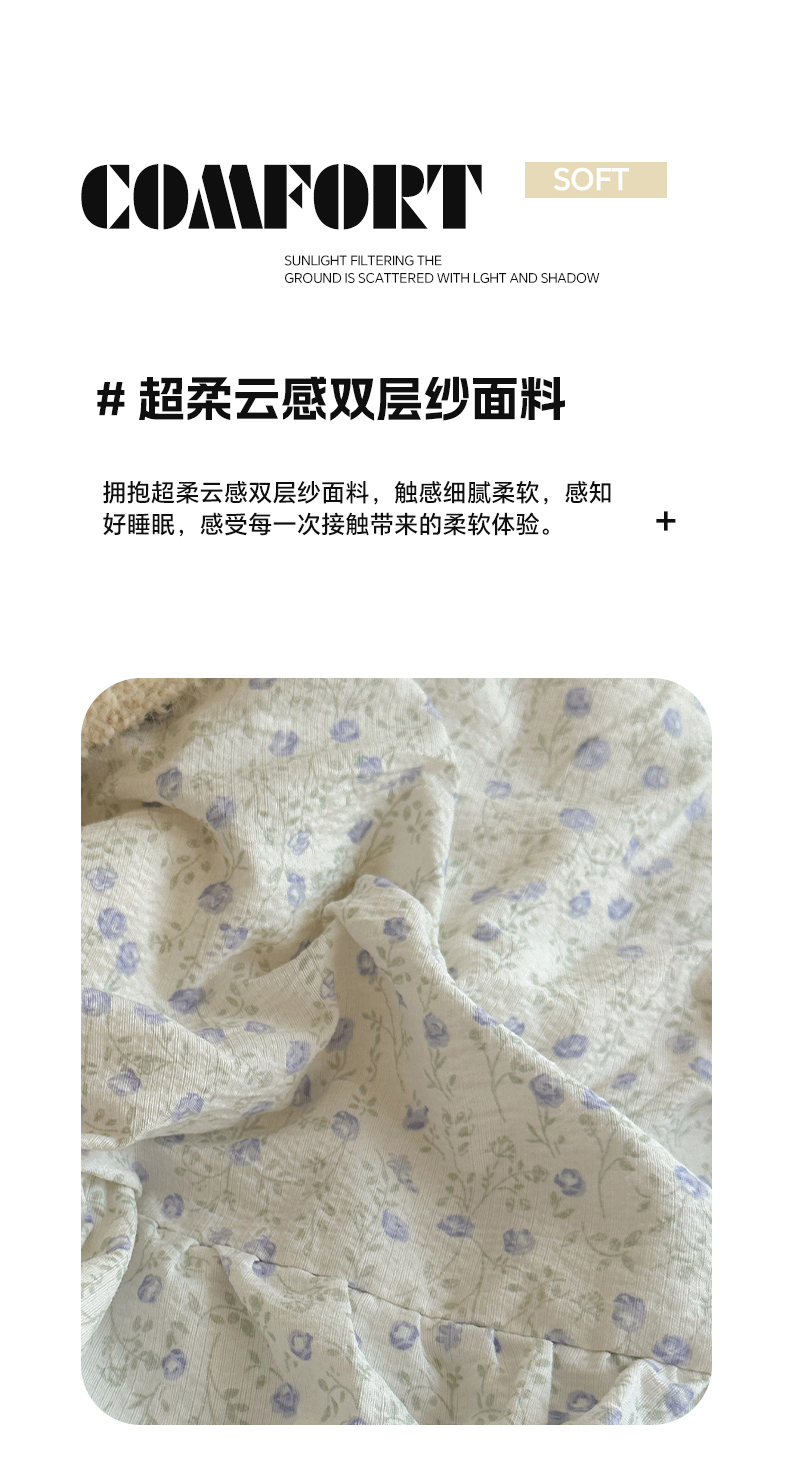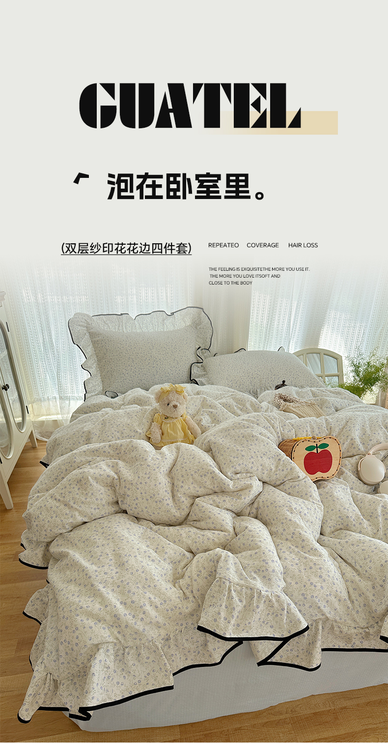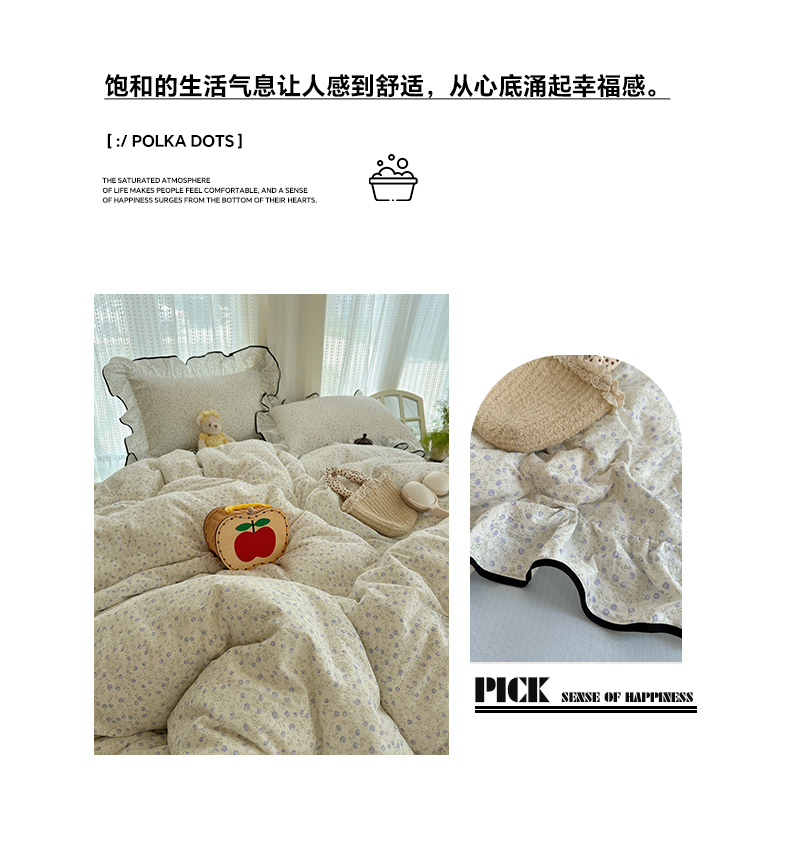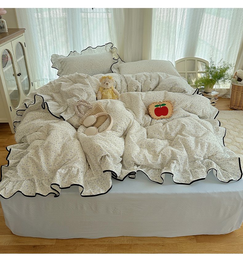 商品名称:红嘴企鹅 2025新款韩版双拼花边四件套 韩版-浅暮堇语