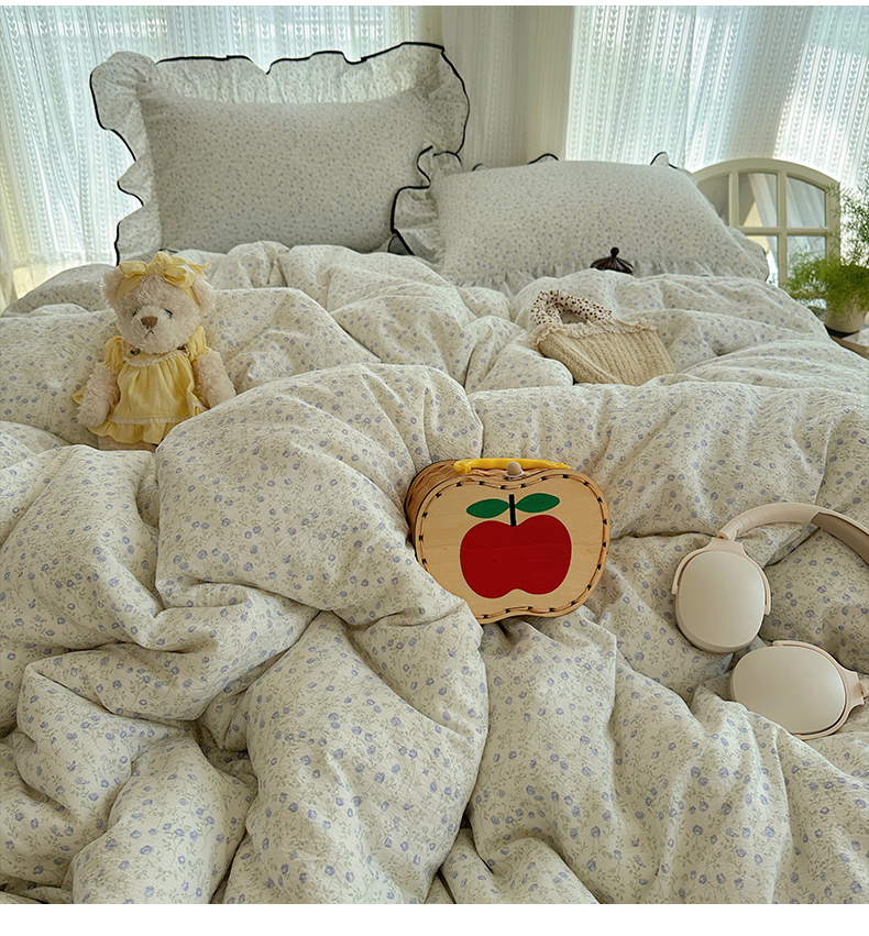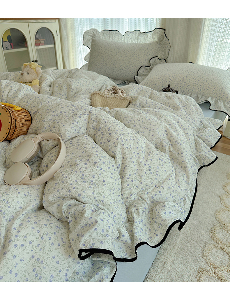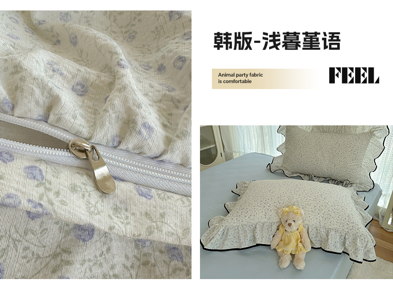 红嘴企鹅 2025新款韩版双拼花边四件套 韩版-浅暮堇语