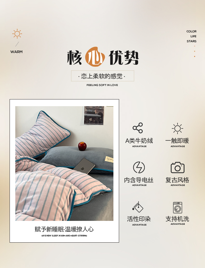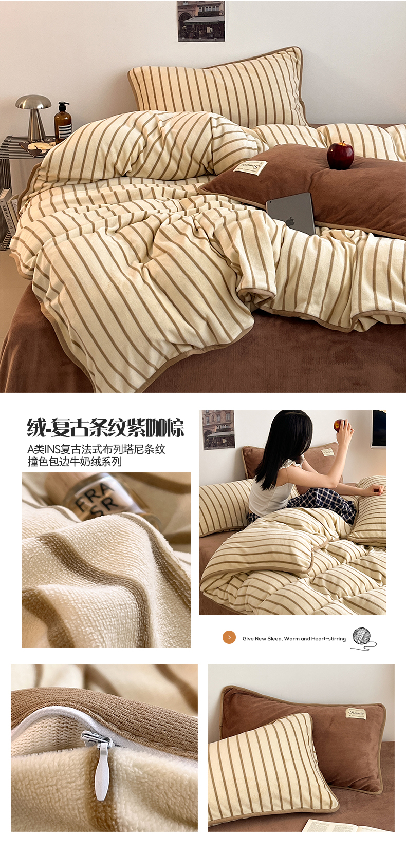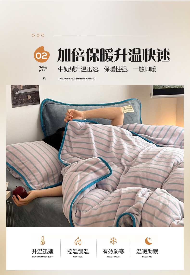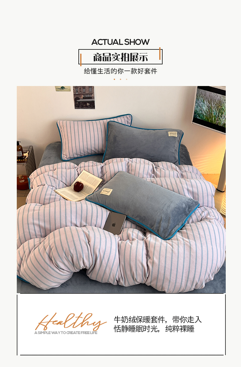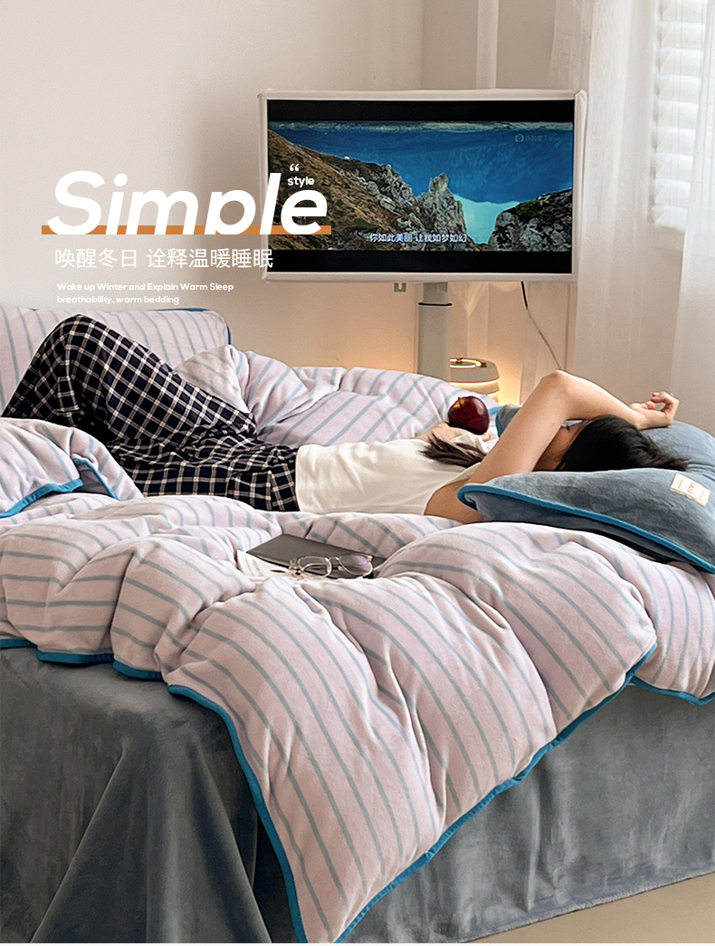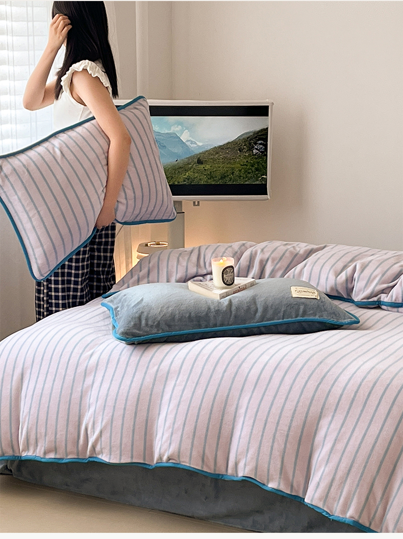 当前位置: 91家纺网 > 商品网购 > 床品套件 > 四件套 > 牛奶绒四件套 > 桃子家居 2025新款A类ins复古条纹法式布列塔尼条纹简约撞色加厚牛奶绒系列四件套 绒-复古条纹紫灰蓝