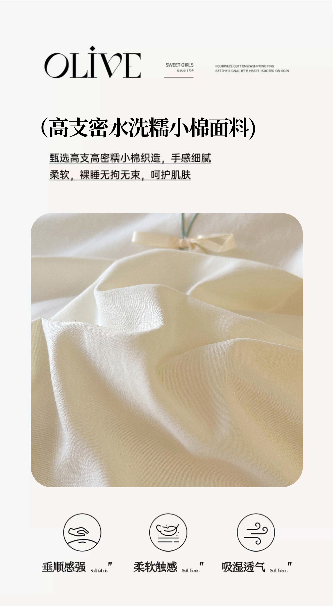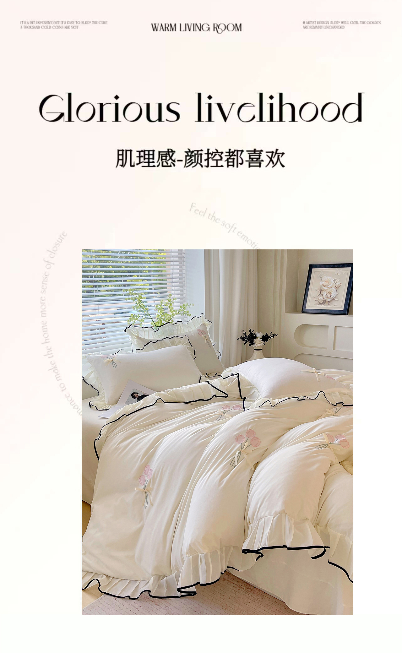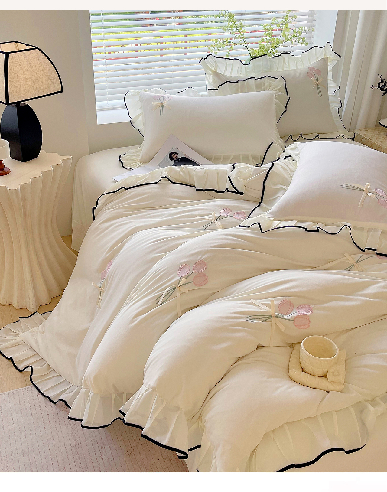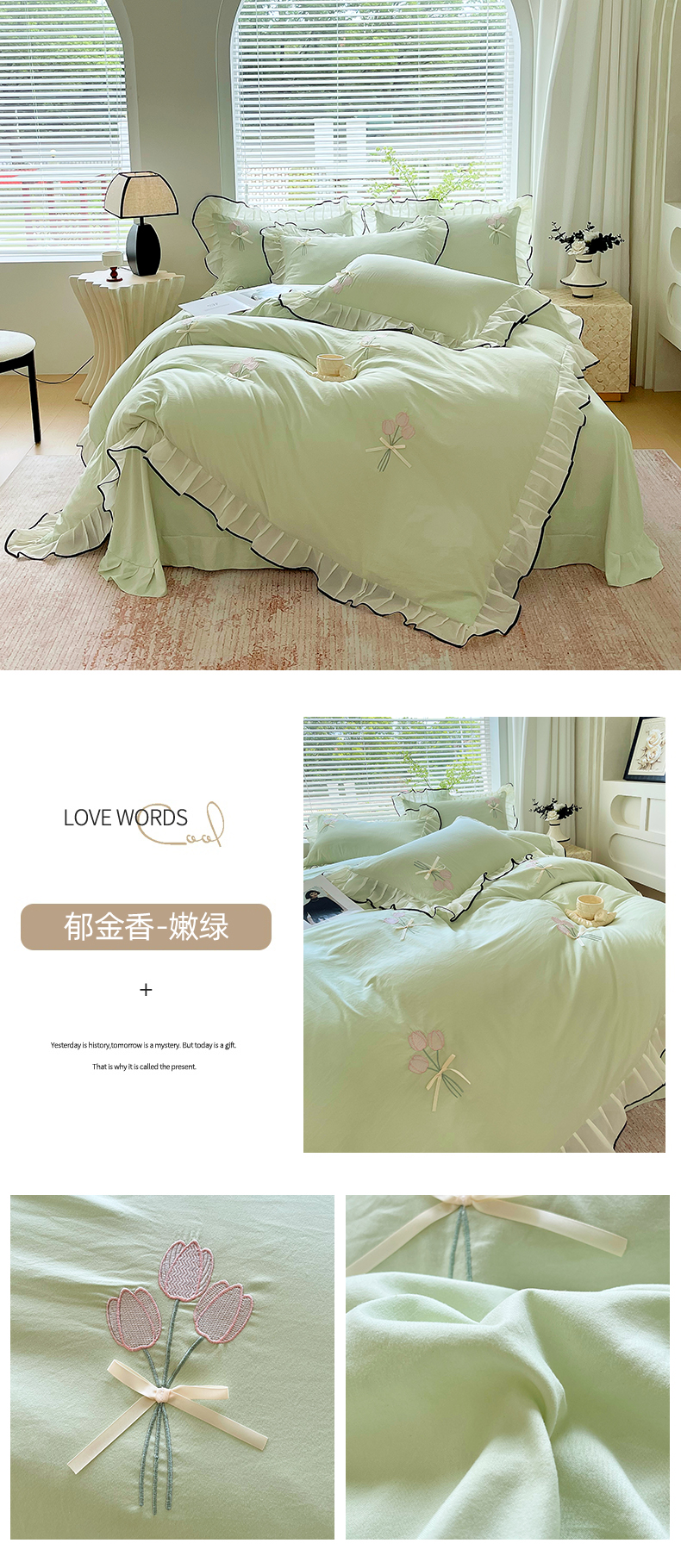 当前位置: 91家纺网 > 商品网购 > 床品套件 > 四件套 > 其它四件套 > 大麦乐田 2025新款小清新水洗糯小棉花边纸立体花刺绣四件套 郁金香-嫩紫