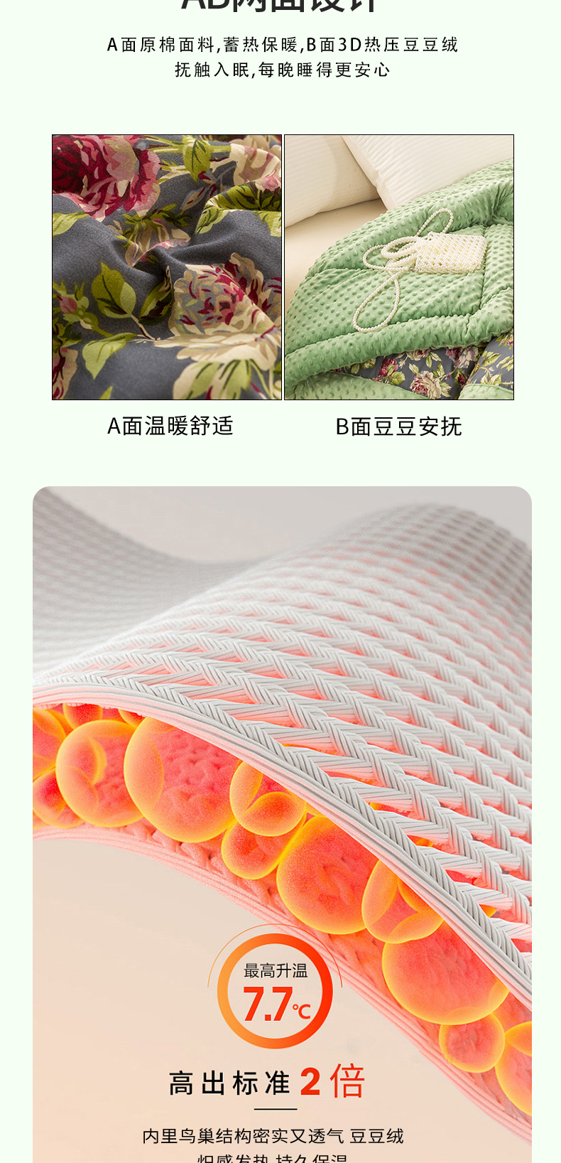 • 91家纺网 家纺一手货源 找家纺 锦鹭被业 2025新款AB版舒适全棉纯棉豆豆绒被被子被芯 水墨花